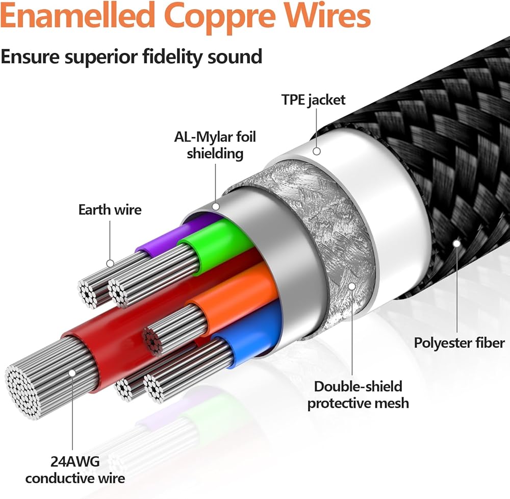 • 【الخارجي القوي مضفر】 يخلق تصميمًا متينًا. إنها المرة الأولى التي نستخدم فيها مواد صيد الأسلاك التي تبلل مع الكابلات الصوتية لتحقيق أقصى قدر من الحماية ، وتصميم مضاد للانزلاق ، ولكن شعور لطيف اللمس.