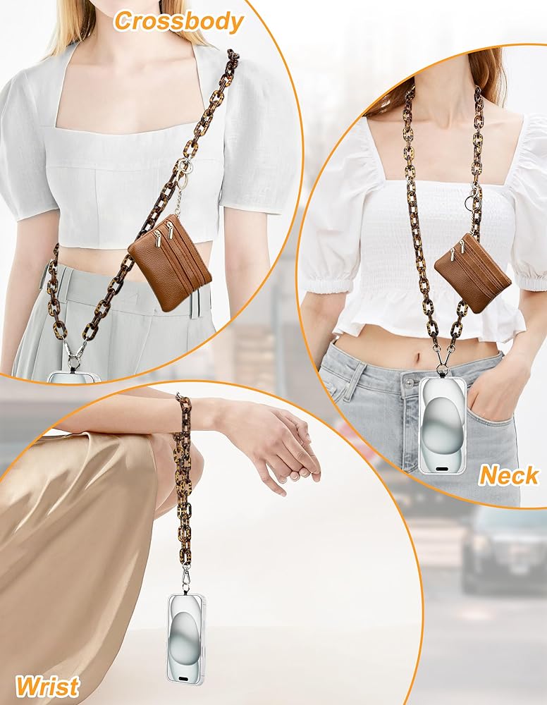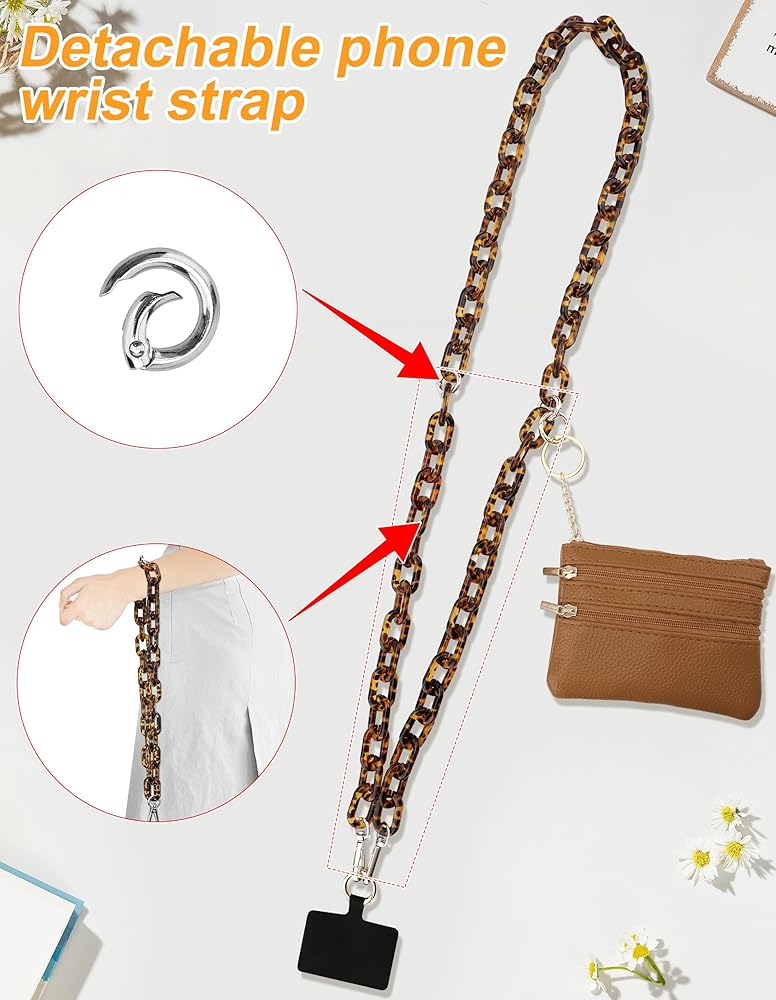 مقطع jusy و so strap للهاتف مع crossbody محفظة ، حزام الهاتف مع حقيبة سحاب ، سلسلة متعددة الأنيقة القابلة للتعديل مع محفظة جلدية لجميع الهواتف -ليوبارد