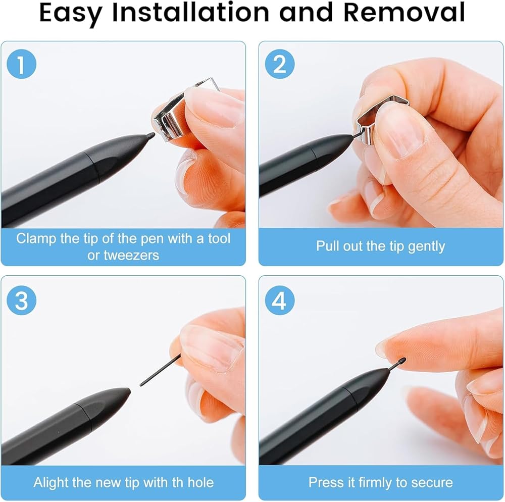 【Effortless Installation】: Our remarkable 2 pen nibs replacement kit includes a handy nib removal tool for quick and easy nib changes. In order to protect your tablet screen, we recommend using the screen film protector for an even smoother writing experience.