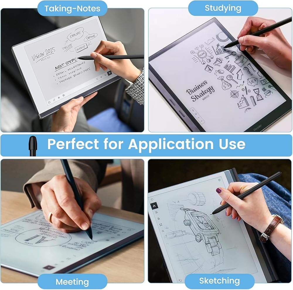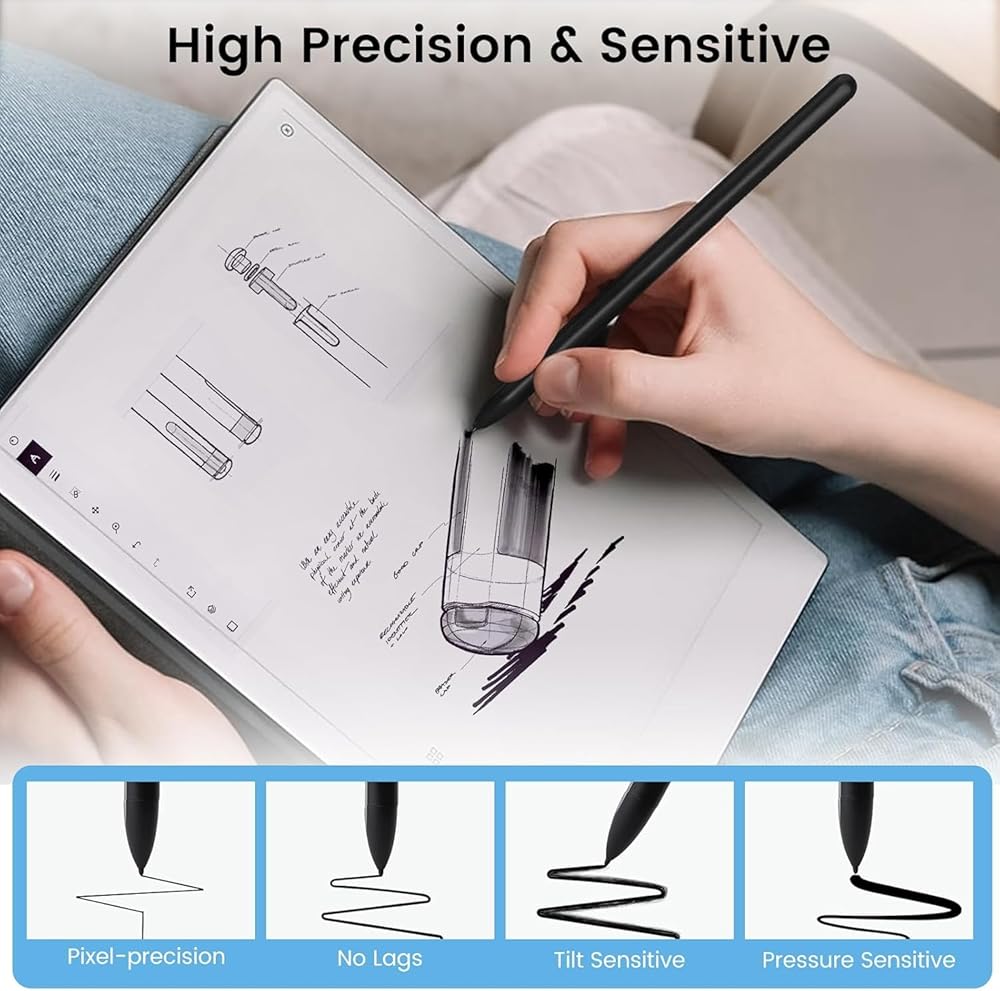 【Precision & Paper-Feel Writing】: With a high precision nib designed for meticulous note-taking and creative expressions,our remarkable 2 tips are engineered to provide a genuine paper-like texture, enhancing focus and efficiency on any ePaper device,offering a comfortable tilt-writing feature for versatile sketching, drawing, and note-taking.
