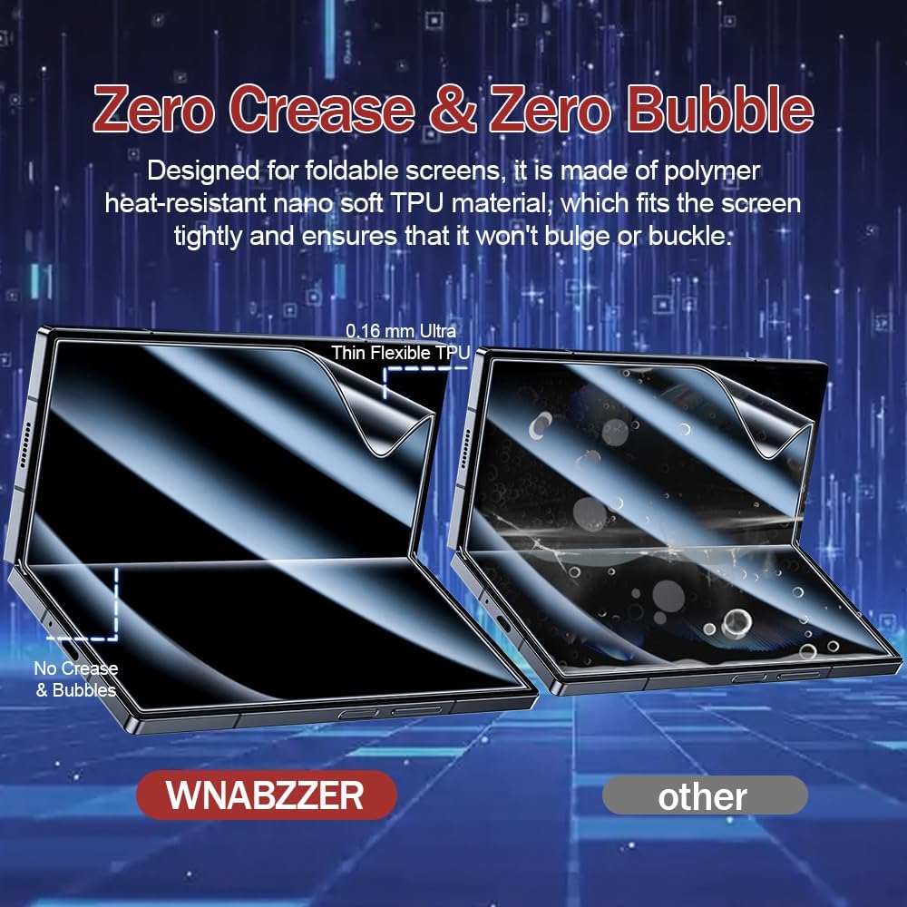• [مواد طية جديدة للطي وذاتية ذاتية]: تم تصميم واقي شاشة Samsung Galaxy Z Fold 6 خصيصًا للشاشة القابلة للطي ، وهو مصنوع من مادة TPU ناعمة مقاومة للحرارة ، والتي تناسب الشاشة بإحكام ، ولن تكون انتفخ أو مشوه حتى بعد 200000 مرة من اختبار الطي.