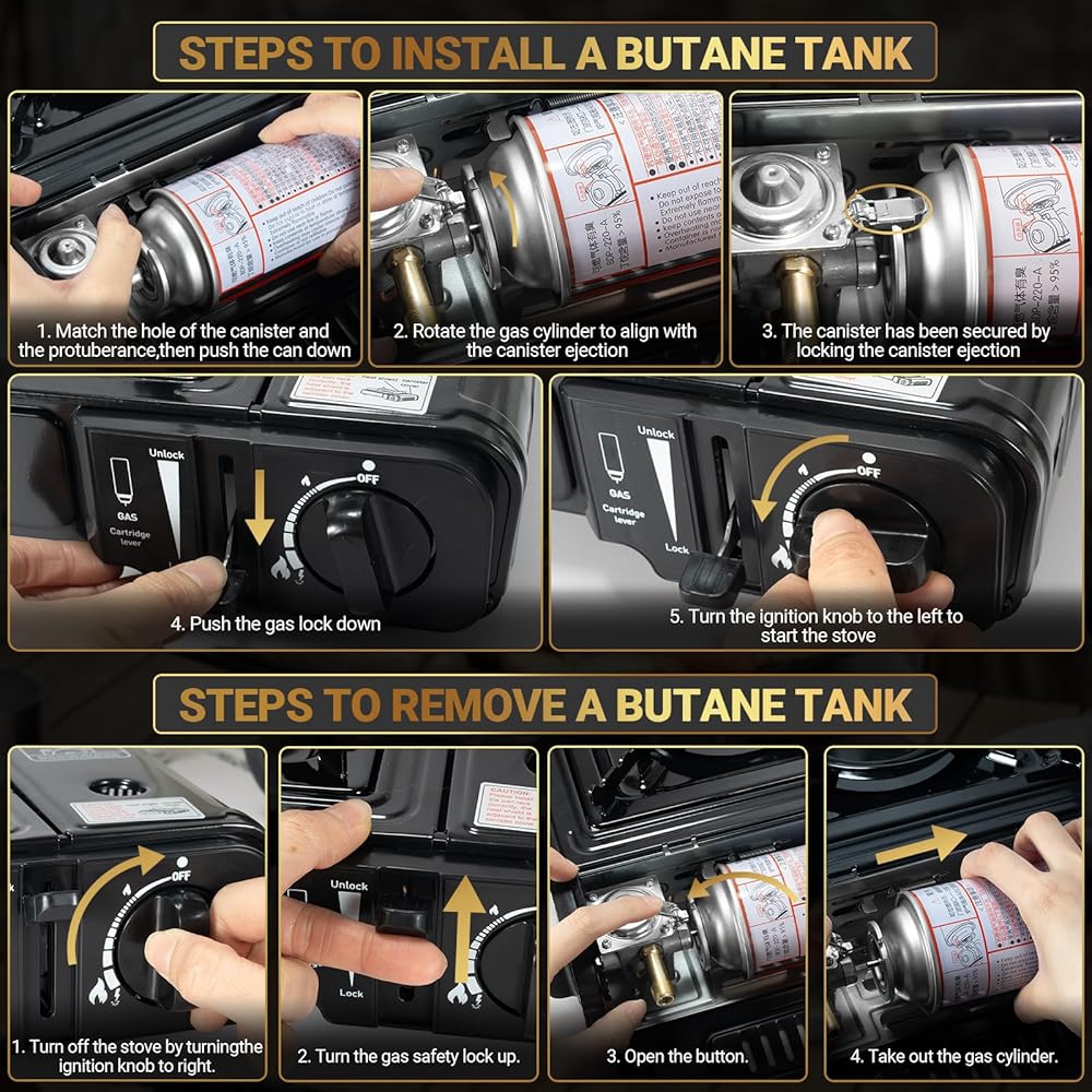 🔥【 ميزات الأمان ، موقد بروبان محمول】: تم تصميمه مع سلامتك كأولوية ، ويأتي موقد التخييم هذا مزودًا بحماية من الضغط الزائد وقفل أمان آمن. يراقب نظام الضغط الزائد بشكل مستمر الضغط الداخلي ، في حين يضمن قفل السلامة أن يبقى العلبة في مكانها بحزم ، مما يمنع الانفصال أو التسريبات العرضية أثناء الطهي.