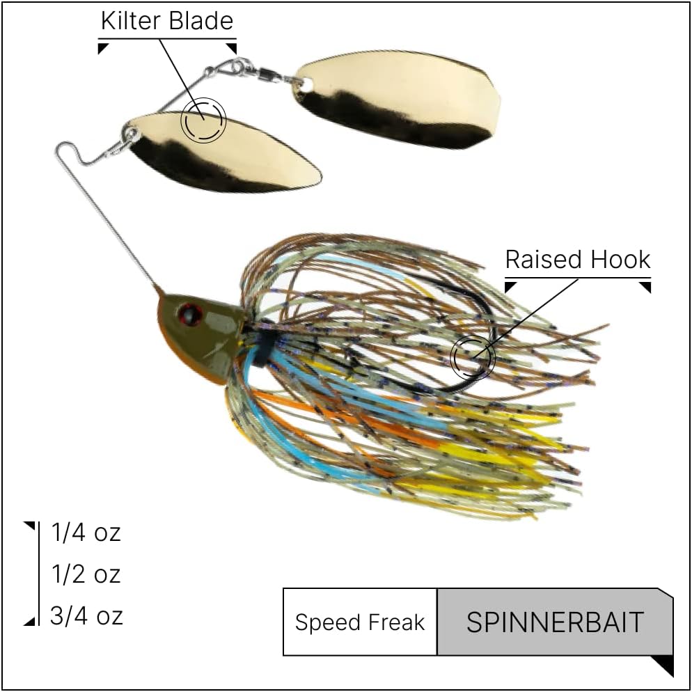 The Speed Freak also sports the patented Kilter Blade which will throw off a unique vibration fish have not felt before to generate more bites!