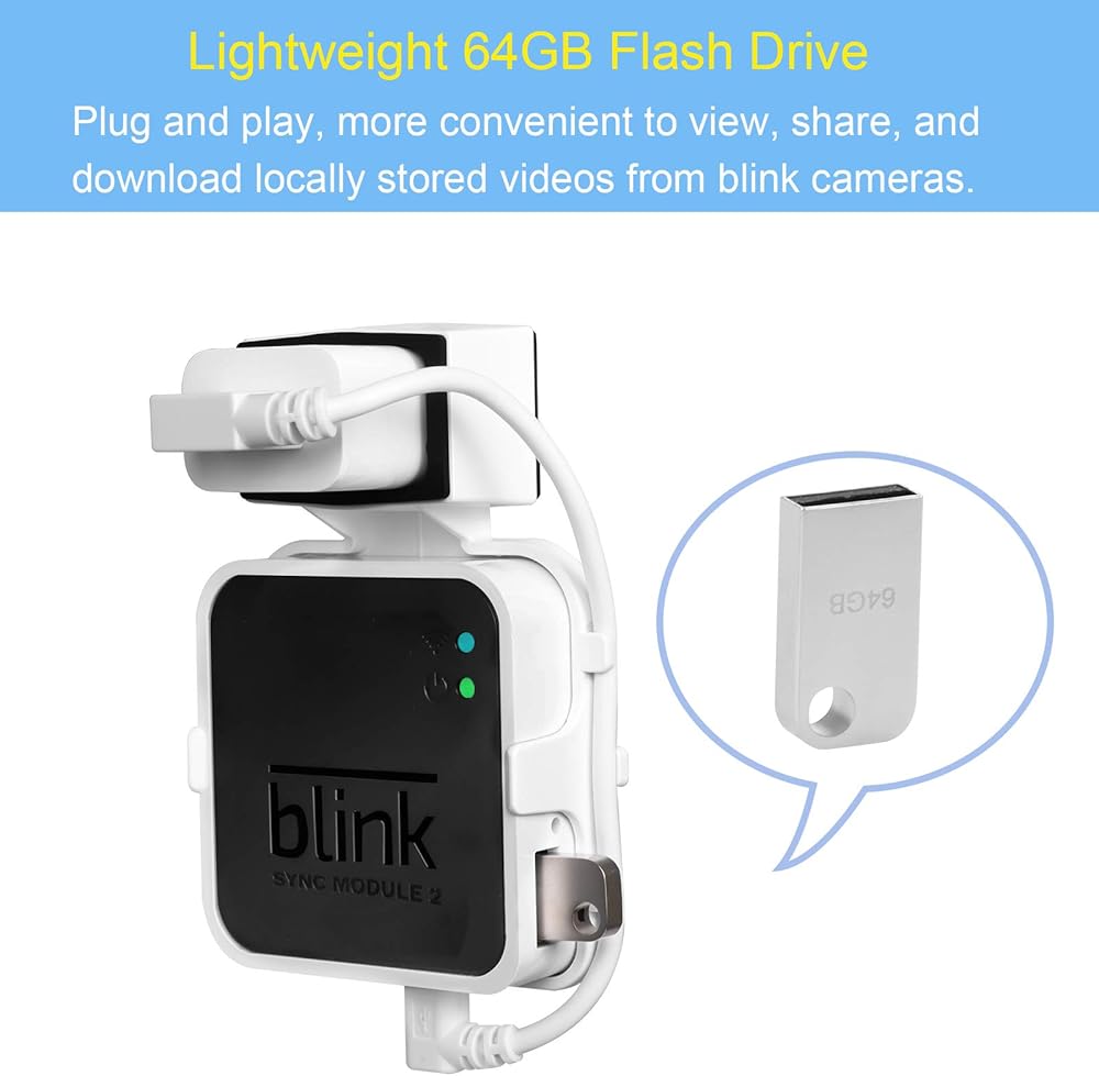 【مطابقة دقيقة】متوافق مع وحدة مزامنة بلينك باللونين الأسود والأبيض، يناسب أجهزتك بشكل مثالي. تصميم القابس سيحافظ على ثباته في مكانه. تتضمن العبوة: ذاكرة فلاش يو اس بي 64 جيجابايت × 1، حامل جداري للمخرج × 1، كابل شحن يو اس بي قصير × 1