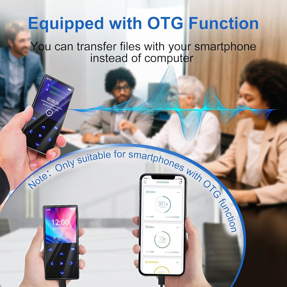 【وظيفة Bluetooth 5.0 و OTC】 تحتوي هذه MP3 على رقاقة Bluetooth 5.0 عالية الجودة ، والتي تقلل بشكل كبير من القفزات الصوتية أو الشقوق. لا داعي للقلق بشأن تأخير إشارات الموسيقى ، ونقل الصوت أسرع وأكثر موثوقية! يدمج MP3 بشكل مبتكر وظيفة OTG ، ولا يلزم توصيل نقل البيانات بالكمبيوتر عبر USB ، ويمكن نقل الملفات باستخدام جهاز محمول مع وظيفة OTG