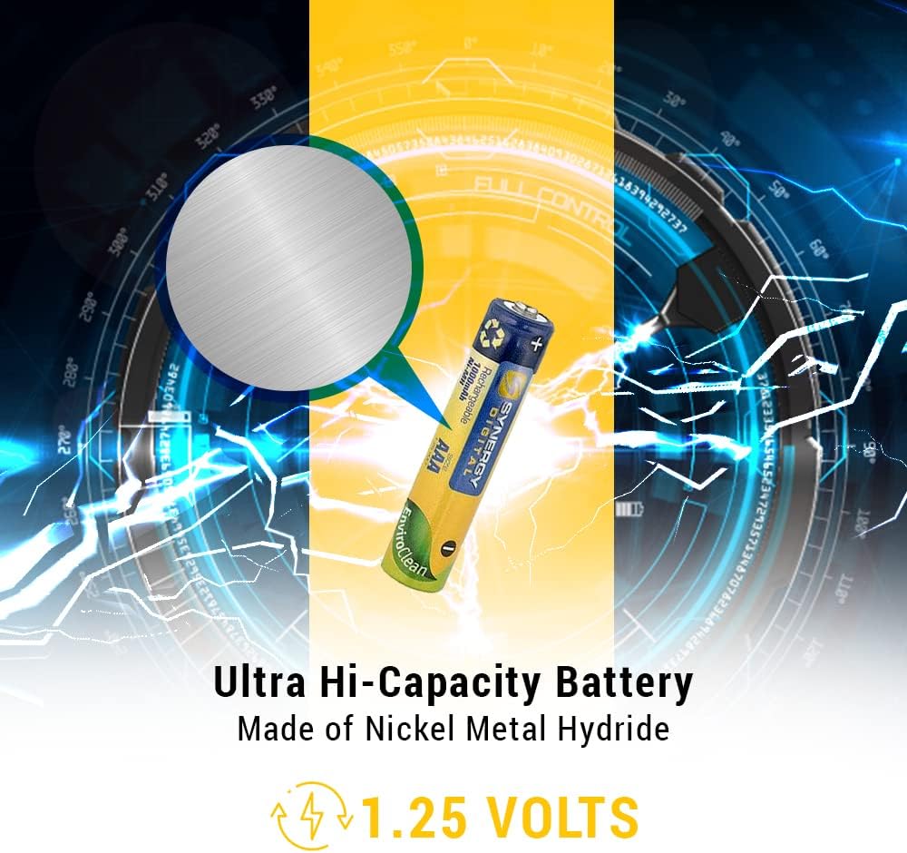 تصميم قابل لإعادة الشحن: تأكد من تشغيل أجهزتك وجاهزة للذهاب عندما تحتاج إليها. Synergy Digital؟ S Synergy Digital Ni-MH ، 1000 Mah Ultra Hi-Capitible Resplaceable AAA قابلة لإعادة الشحن ، مما يوفر قيمة طويلة الأجل مع نفايات أقل.