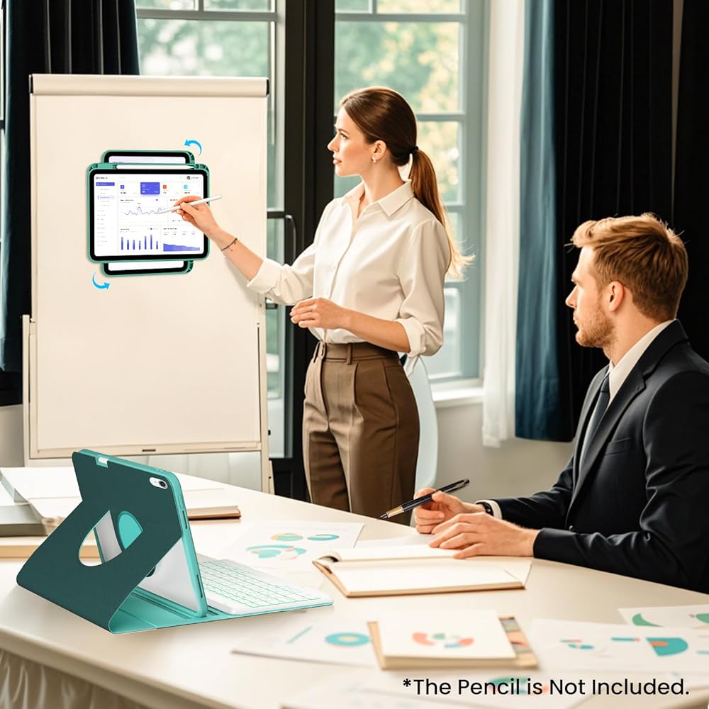 【360 من القابلة للتدوير magnetcially】 لوحة مفاتيح قابلة للبلوتوث القابلة للإزالة واللاسلكية التي تحول جهاز iPad إلى جهاز كمبيوتر محمول للغاية وأداء سهل الاستخدام أو كتابك المفضل في أقل من ثانية. تخطيط مع مفاتيح ساخنة مخصصة لأجهزة iPad ، بما في ذلك الحجم ، والتحكم في الموسيقى ، والسطوع ، وما إلى ذلك ، مع التصميم الكلام والميليكي ، يمنحك شعورًا يشبه الجلد ويوفر راحة طوال اليوم للعمل والترفيه