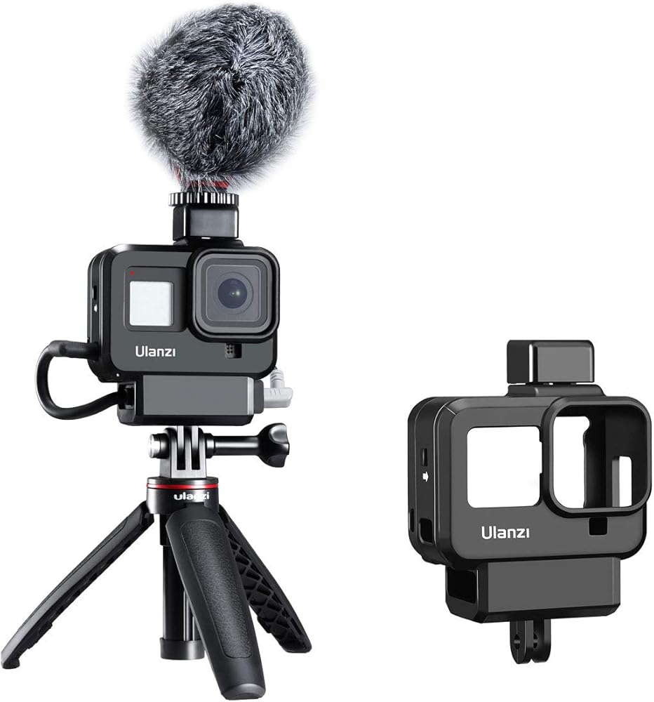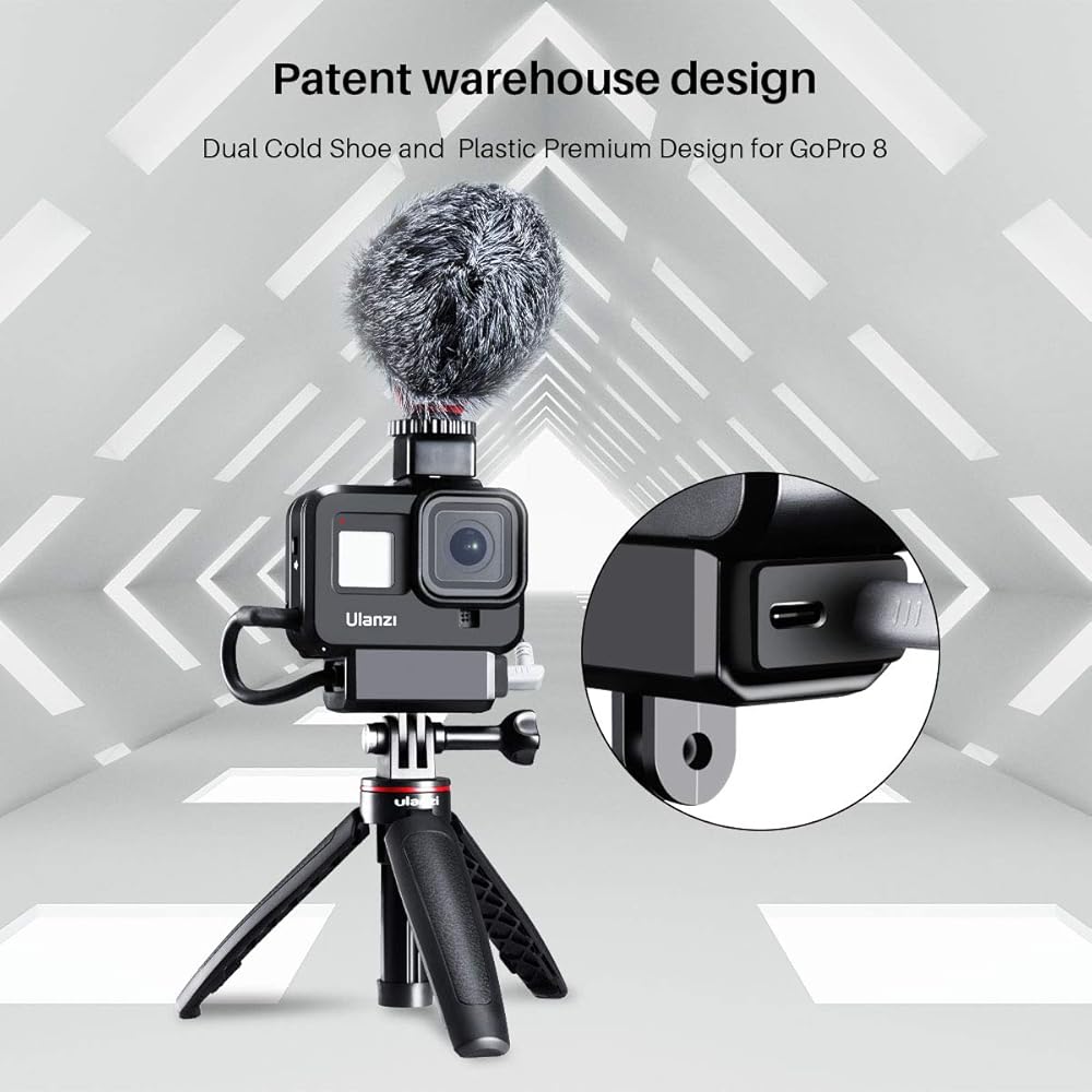 ULANZI G8-9 حافظة واقية خفيفة الوزن لـ Gopro 8 أسود، 2 حامل حذاء بارد لميكروفون Gopro ميكروفون محول Vlog ملحق متوافق مع حامل ثلاثي القوائم Selfie Stick Monopod