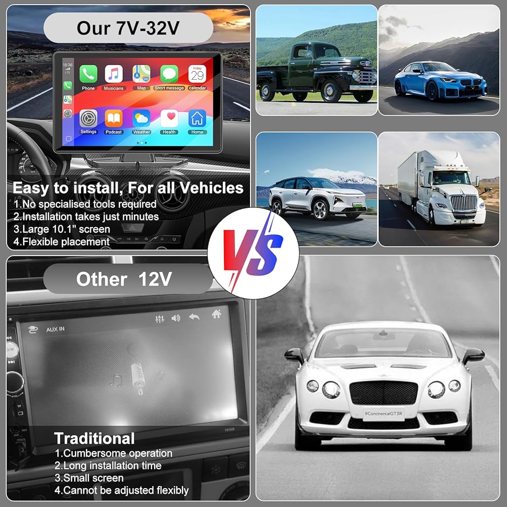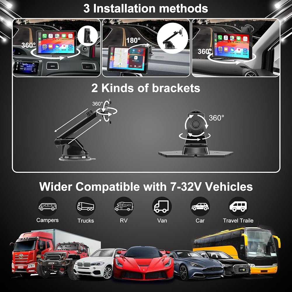 🚗【 التثبيت السهل ، التوصيل والتشغيل ، يناسب جميع نماذج المركبات】 الشاشة المحمولة لـ Apple CarPlay يسهل تثبيتها. لا حاجة لتفكيك وحدة التحكم في السيارة. ما عليك سوى توصيله من خلال سيارتنا الأخف لاستخدام التوصيل والتشغيل. علاوة على ذلك ، يوفر Accfly Apple Carplay نوعين من الأقواس: نوع كوب الشفط ونوع الوقوف الذي لاصق ذاتيًا ، بحيث يمكنك اختيار مواضع التثبيت المختلفة بحرية. يعمل مع المركبات من 7 إلى 32 فولت ، بما في ذلك السيارات والشاحنات و RVS.