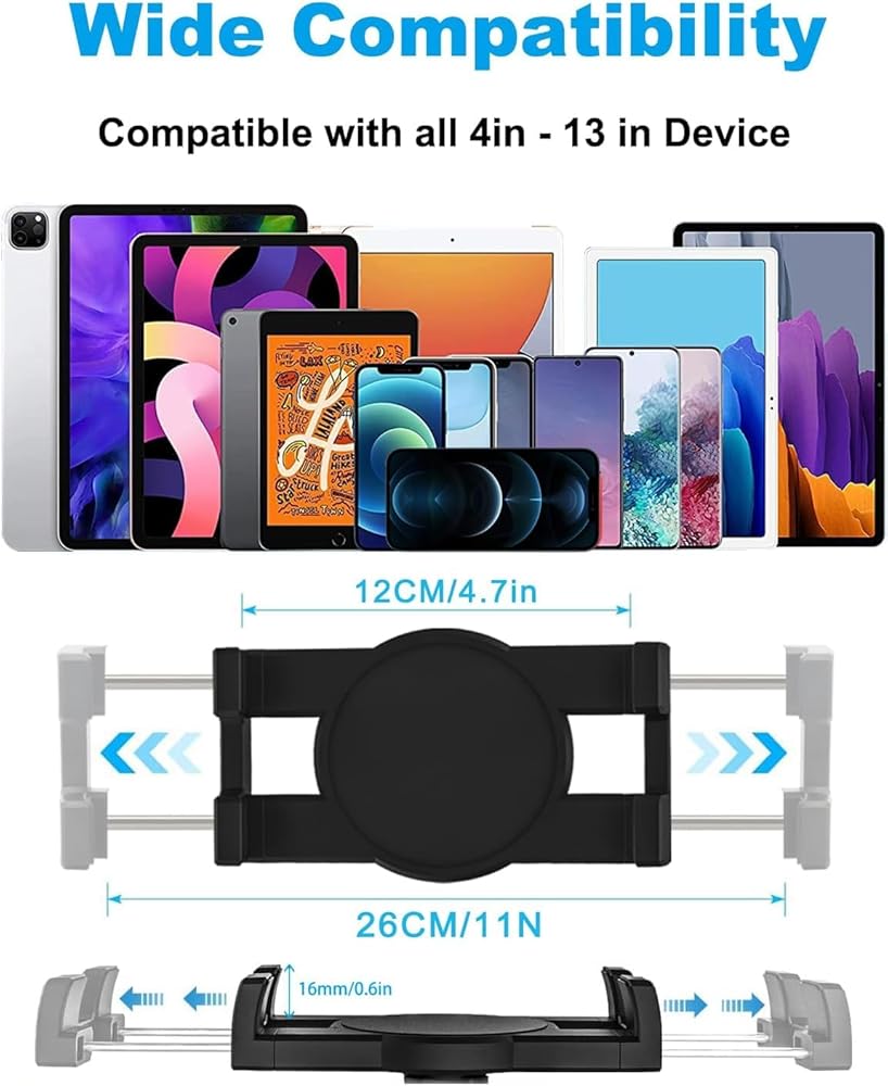 ✔ The maximum stretching width of Tablet/cell-phone is 10.2 inches / 26 cm.