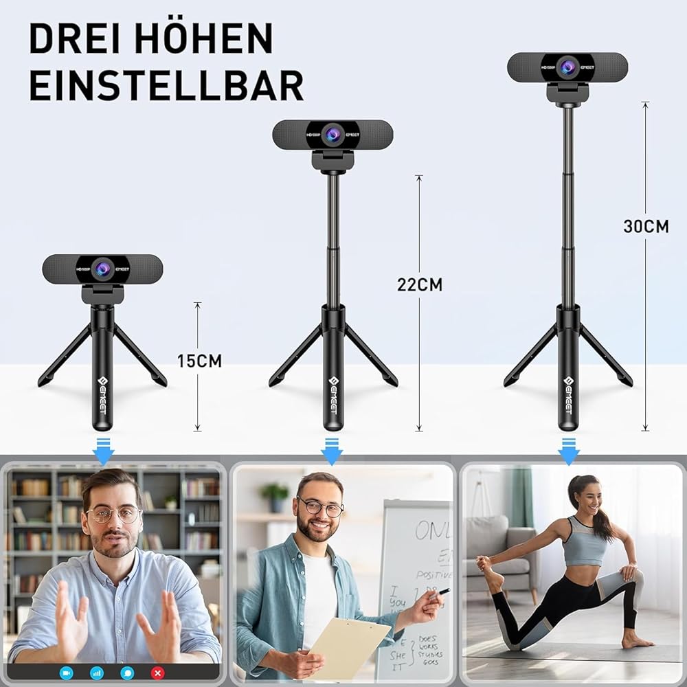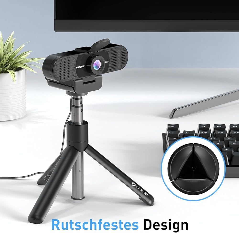 [انخفاض الاعتماد على ظروف الإضاءة] تطبق كاميرا ويب Emeet 1080p HD تقنية تصحيح الضوء المنخفض التلقائي ، والتي تمكن كاميرا الويب من التقاط الصور في الضوء المنخفض. تتميز كاميرا كمبيوتر Emeet C960 أيضًا بالتحسينات المنخفضة ، وتعزيز الألوان ، وتعديل التعرض ، مما يتيح لك أن تبدو أفضل ما لديك في ضوء قاسي. نفكر في كل شيء! يأتي ترايبودنا مع قاعدة غير قابلة للانزلاق ، لذلك لا داعي للقلق بشأن الانزلاق أثناء الاستخدام.