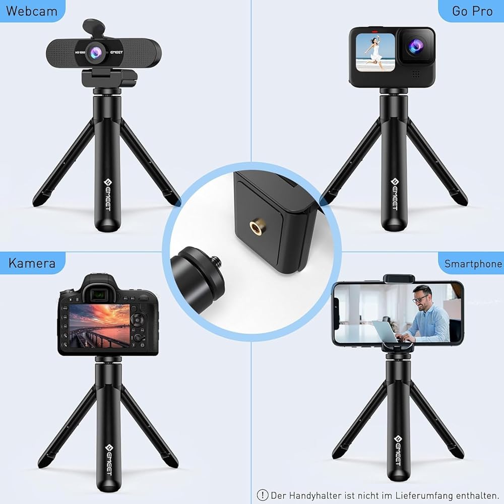 [ترايبود توافق عالي] ترايبود مضغوط مع المسمار 1/4 بوصة متوافق تمامًا مع مجموعة واسعة من الأجهزة. يمكن استخدامه مع كاميرات الويب والهواتف والكاميرات وكاميرات الحركة. تلبية الاحتياجات المختلفة لحياتك اليومية. يمكنك استخدام ترايبود لتسجيل مقاطع الفيديو ، والبث على وسائل التواصل الاجتماعي ، وتوثيق حياتك اليومية الجميلة في تجمعات صغيرة ، وتوفير صور مستقرة وواضحة خلال الاجتماعات عبر الإنترنت. (حامل الهاتف غير مدرج.)