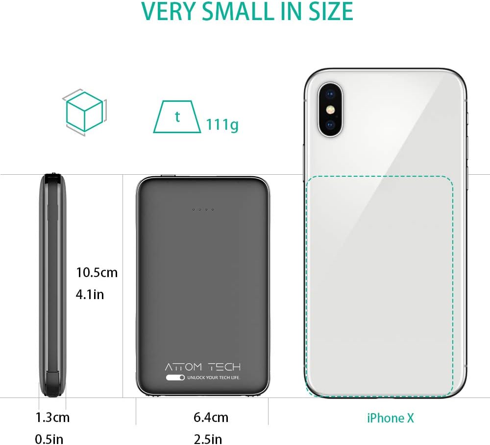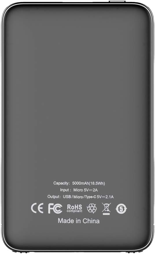 [Smallest 5000mah Power bank] - Pocket Size 0.4" x 2.5" x 4", Light Weight only 3.6 Oz. It's compact size is perfect for every day use. It can be put into pocket easily.