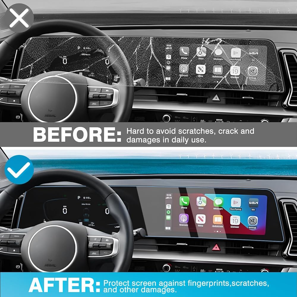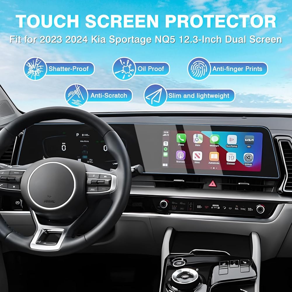 【ملاءمة مثالية ، لا توجد فقاعات】 مصممة فقط لإكسسوارات Kia Sportage NQ5 Sportage LX /EX /SX /SX-PRESTIGE /X-Line 2023 2024 2025 12.3 بوصة ملحقات الشاشة المزدوجة. قطع تماما ، يناسب جيدا ، التثبيت بسهولة ، لا فقاعات أو بقايا تركت وراءها.