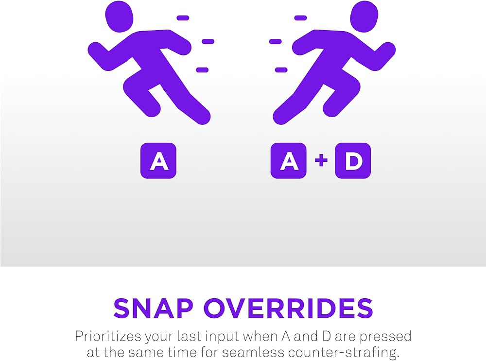 ENHANCED GAMEPLAY — Rapid Trigger resets keys instantly as they travel upward for ultra-fast repeated presses, while Snap Overrides prioritizes your last input between A and D for seamless counter-strafing