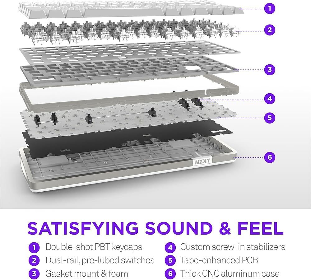 SATISFYING SOUND & FEEL — Sound-dampening foam and a tape-enhanced PCB create “thocky” acoustics, while the gasket mount design provides a soft, cushioned typing experience