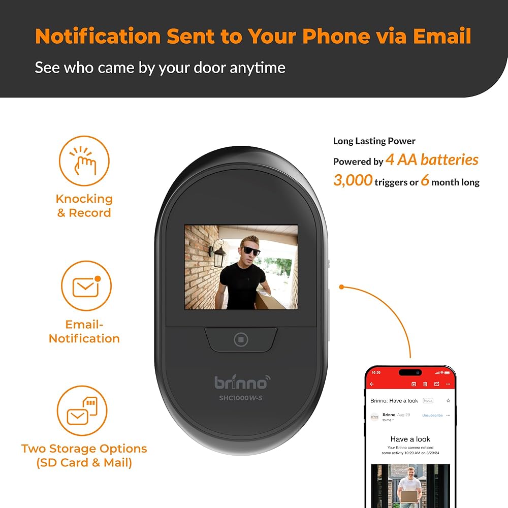 الأمن: مستشعرات طرق وحركة. يتم التقاط الصور تلقائيًا دون معرفة زوارك وحفظها في سجل زائر على بطاقة SD داخلية. عرض الصور من سجل الزوار باستخدام شاشة LCD المدمجة للكاميرا أو استخدم بطاقة SD لنقل ملفات سجل الزوار ببساطة إلى جهاز الكمبيوتر الخاص بك.