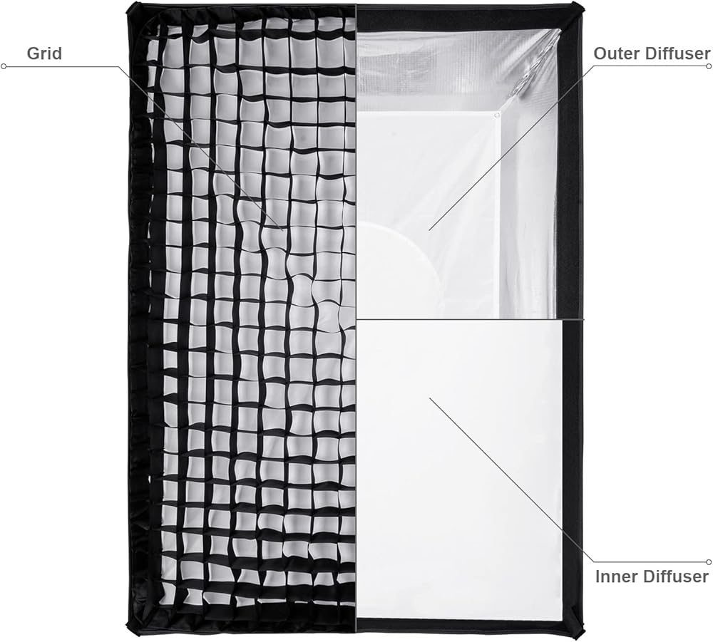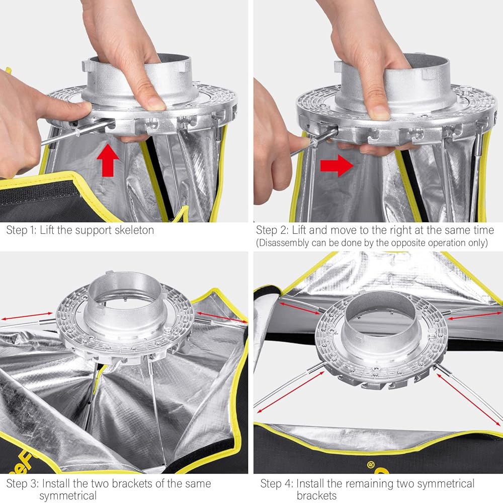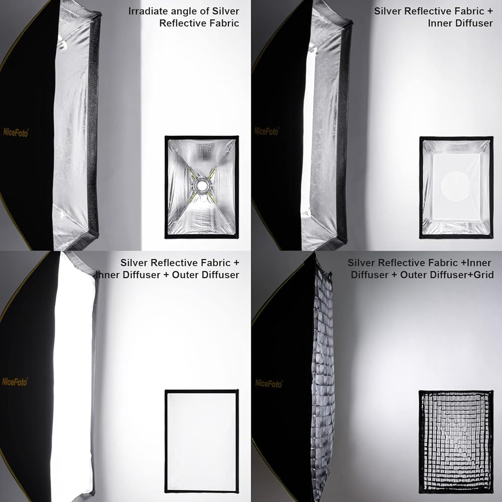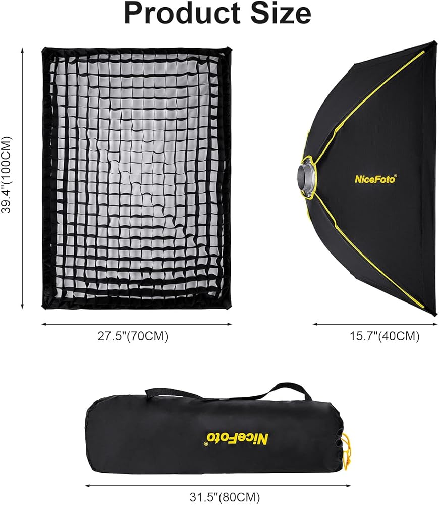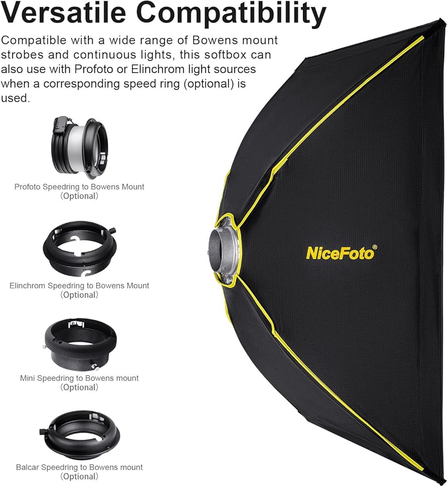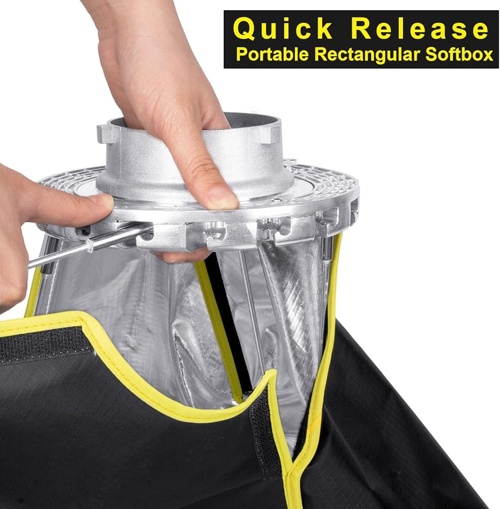 يستخدم NiceFoto Rectangular Softbox ES710 نظام إطلاق سريع ، يمكنه بسهولة إكمال التثبيت والطي ، وهو أمر سهل الحمل