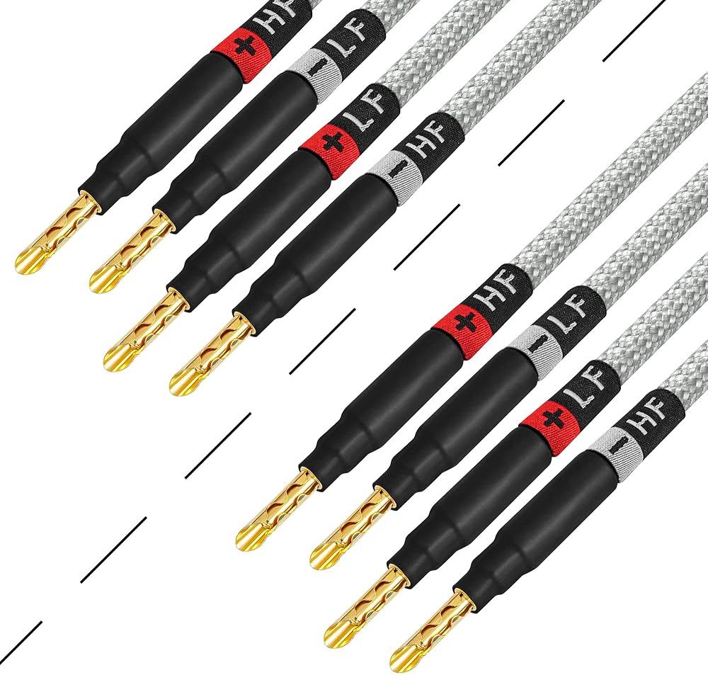 أفضل كابلات في العالمين 6 أقدام في نهاية المطاف - 9 AWG - فائقة النخاع - OFC - زخرفة مكبرات صوت متميزة HIFI BI -AMP مع سدادات Banana Gold Banana و Silver Tweed سترة