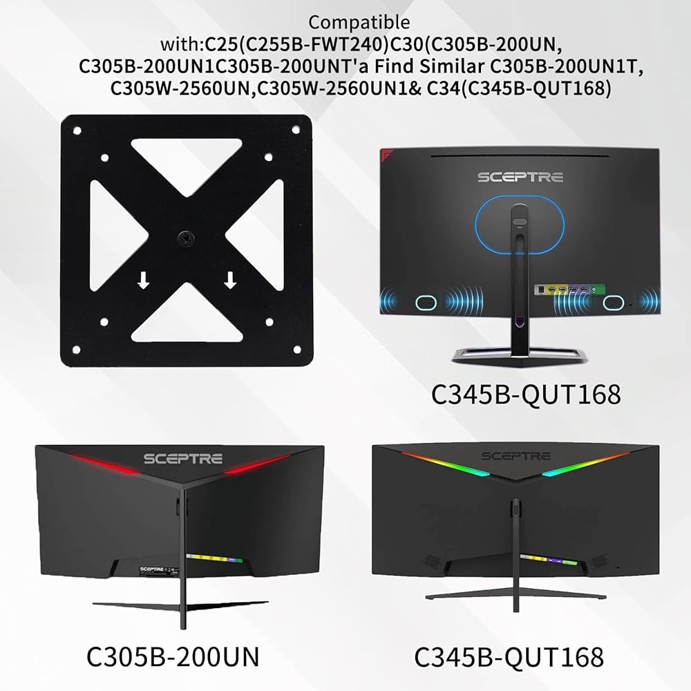 Compatible with: Sceptre C25 (C255B-FWT240), C30 (C305B-200UN, C305B-200UN1, C305B-200UNT, C305B-200UN1T, C305W-2560UN, C305W-2560UN1), and C34 (C345B-QUT168) (is not compatible with other monitors).
