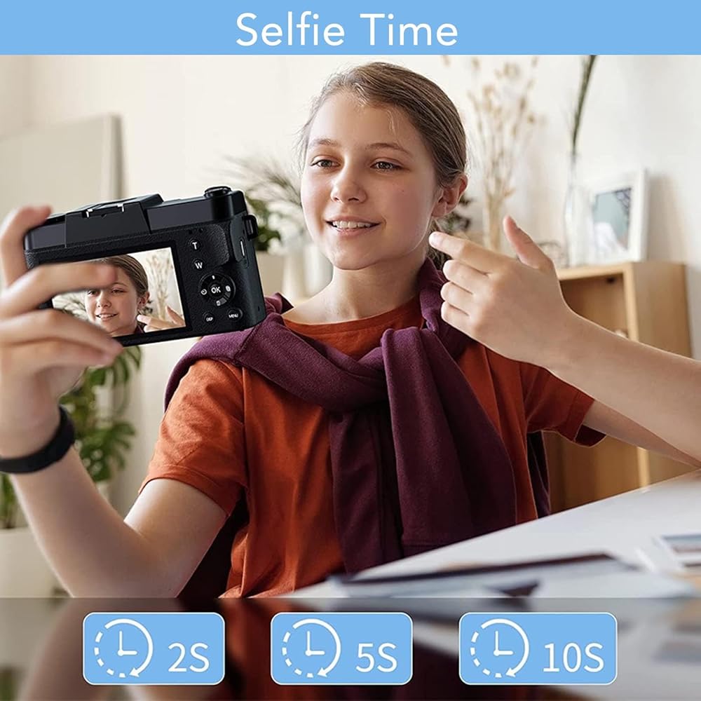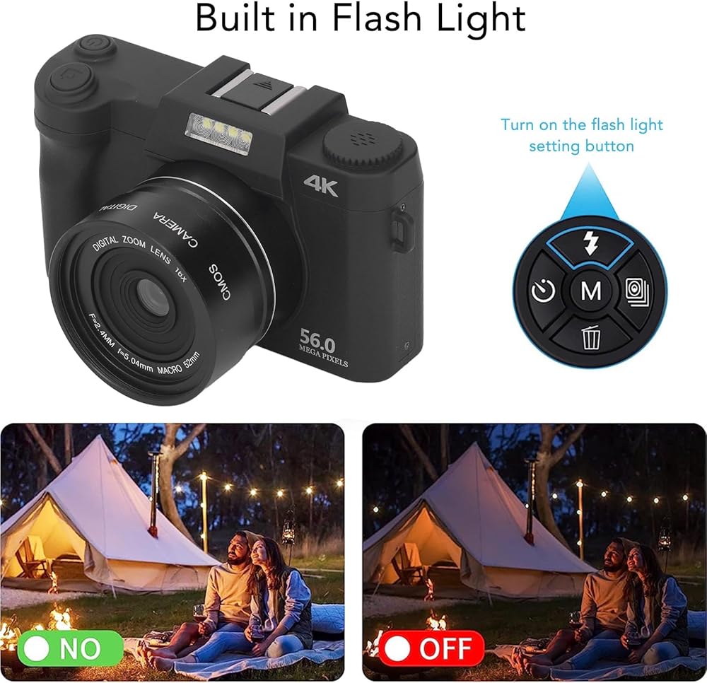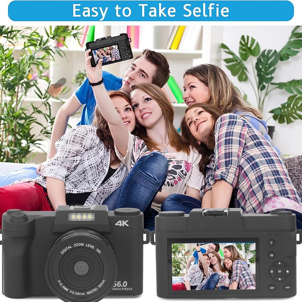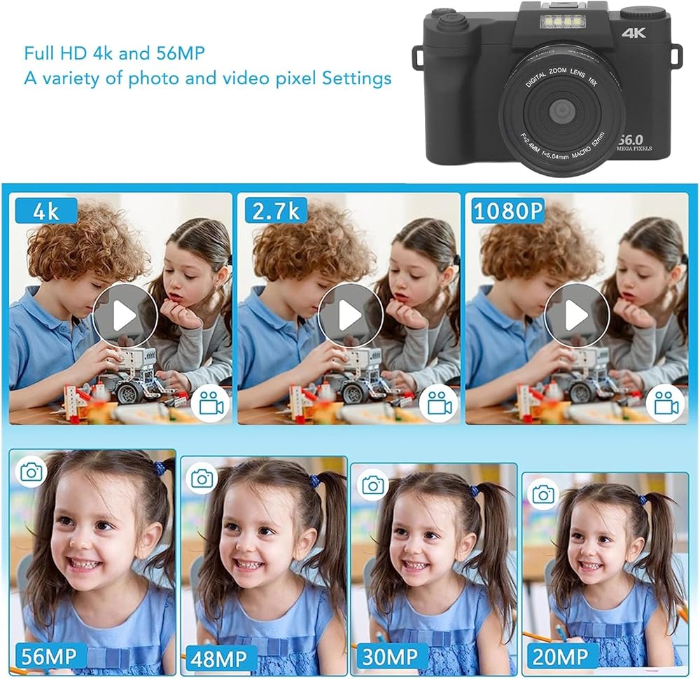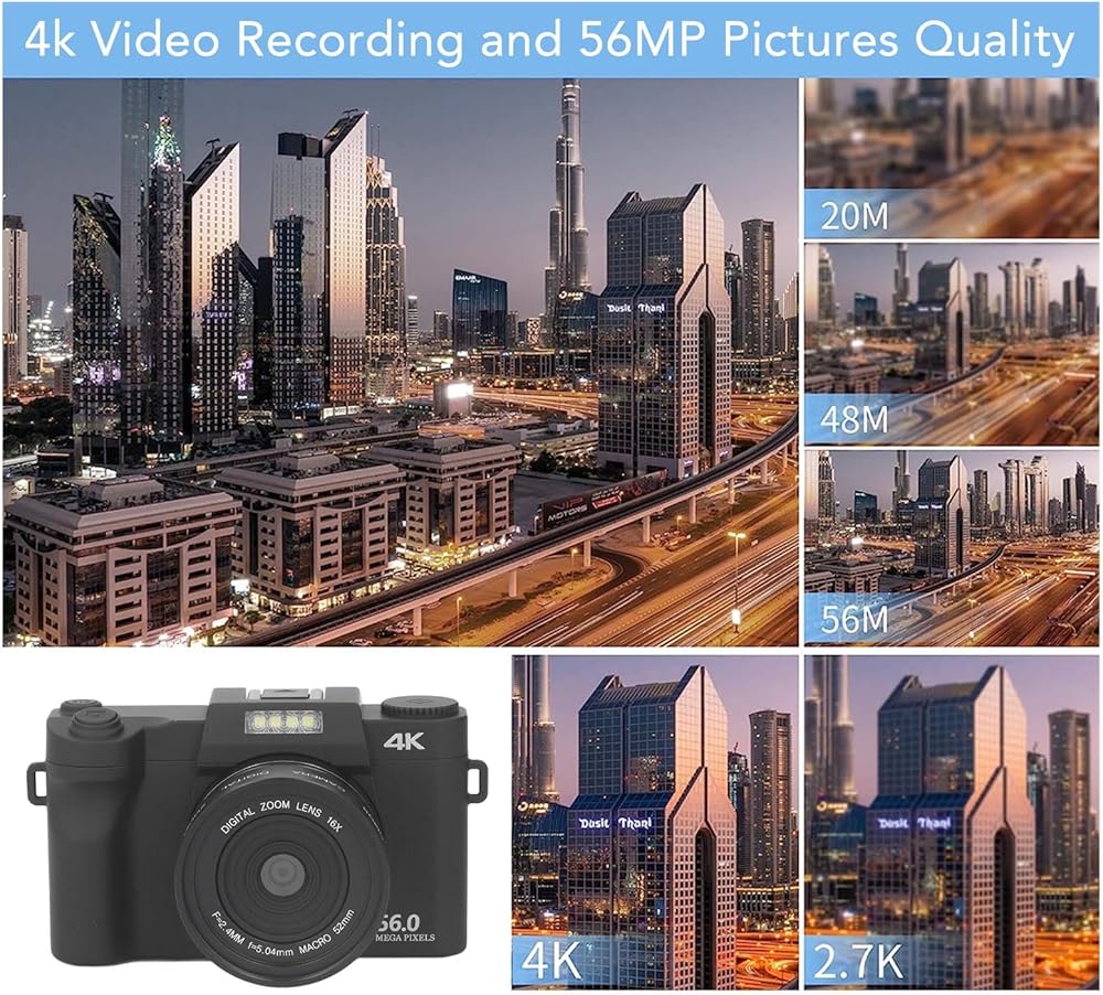 دقة عالية: تتميز الكاميرا الرقمية 4K بشاشة IPS سعة 3.0 بوصة ، مما يدعم دقة تصوير ما يصل إلى 56 ميجابكسل ودقة فيديو 4K. مع التكبير الرقمي 16x وتركيز تلقائي للصورة ، فإنه يضمن صورًا واضحة وتسجيلات فيديو.
