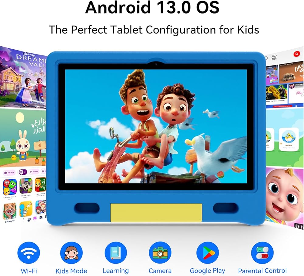 جهاز الكمبيوتر اللوحي Apolosign Kids ، 10.1 بوصة Android 13 Tablet للأطفال ، بطارية 8 ساعات ، ألعاب تعليمية ، قرص تعلم مع التحكم الوالدي ، Wi-Fi ، BT5.0 ، تطبيقات مثبتة مسبقًا ، مع Case (Blue)