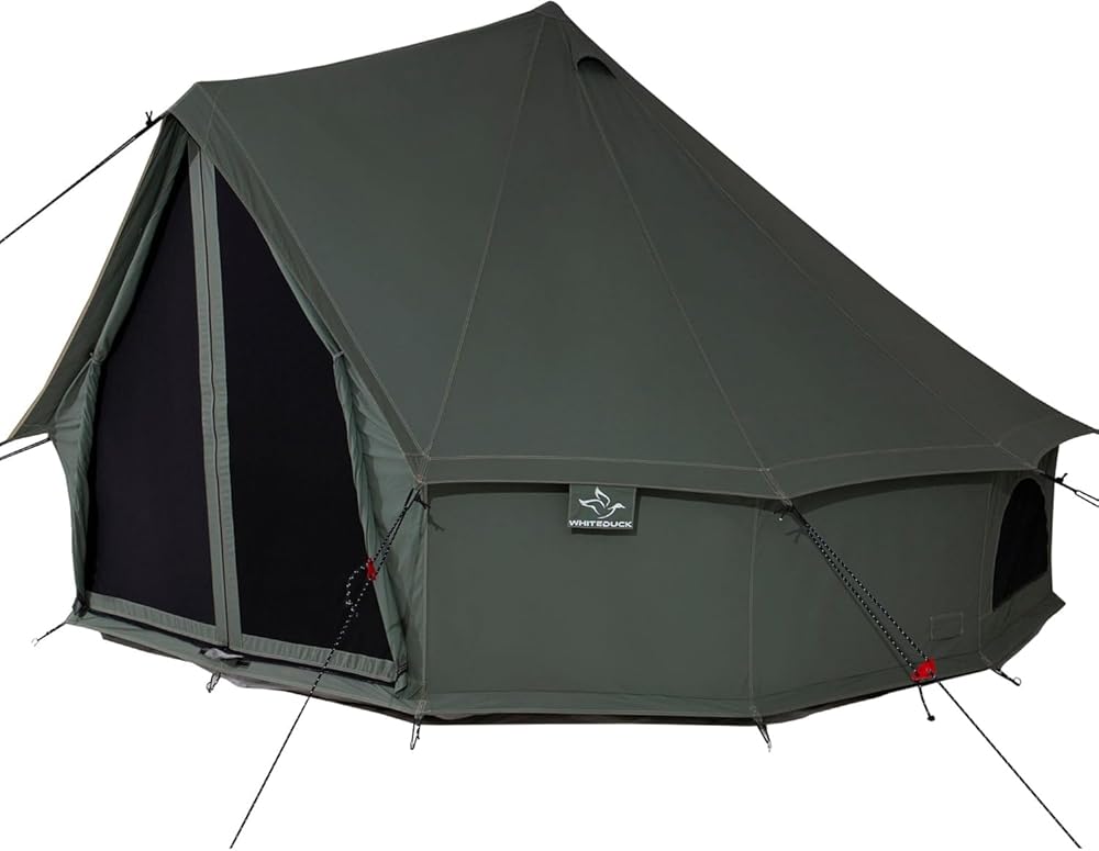 The Regatta canvas tent is made from breathable performance canvas. It's waterproof, UV resistant and available in multiple colors. With excellent wind and rain resistance, it's your reliable shelter in any weather. It's also available in a flame-retardant version for 4-season camping with wood stove. Elevate your outdoor experience with the White Duck Outdoors Regatta Tent. The canvas bell tent package includes a sewn-in groundsheet, stove jack, windows with mesh, roof vents, poles, a tool kit and a weatherproof bag - ALL are included with your purchase. All our bell yurt tents are built to perform in all weather conditions. Our PFC-free finish makes all tents completely water resistant. The stove jack, made from fire retardant material, allows for easy installation of a wood stove to stay warm on cold winter nights. This yurt style glamping tent has a spacious design with standard wall height of 2'7" which is higher than average bell tent wall heights. The super spacious interior boasts tons of stand-up space and walk-around comfort. The Regatta comes in 4 sizes, perfect for your group of any size. The Regatta canvas tent boasts 2-layered doors and windows for ultimate protection from inclement weather. An electrical cable outlet makes it easy to keep your devices charged. Pockets provide quick access to personal items. Our heavy-duty zippers are weatherproof, and maintain the longevity of the tent.