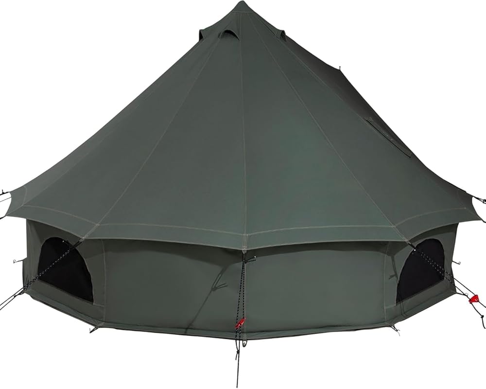【EXTREMELY SPACIOUS GLAMPING TENT】 This yurt style glamping tent has a spacious design with standard wall height of 2'7" which is higher than average bell tent wall heights. The super spacious interior boasts tons of stand-up space and walk-around comfort. The Regatta comes in 4 sizes, perfect for your group of any size.