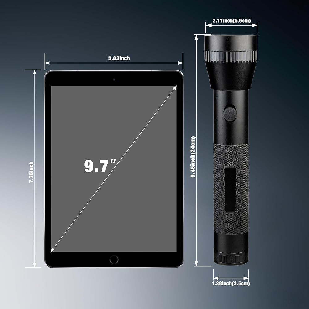 Long Battery Life: Powered by two D-cell batteries (not included), this large flaslight offers extended runtime up to 8 hours for dependable lighting for home use, emergency, power outage, camping, etc.