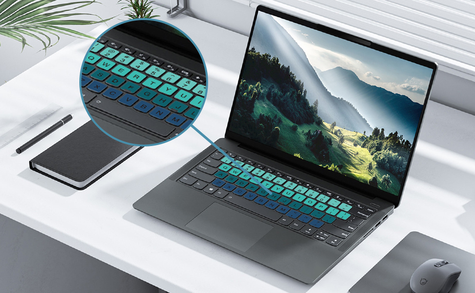 【الكتابة غير المضطربة】: تم تصنيع ملصقات لوحة المفاتيح من مواد خفيفة الوزن ودائمة ، مما يضمن عدم التدخل في تجربة الكتابة. هذا يضمن تجربة كتابة مريحة أثناء استخدام لوحة المفاتيح.