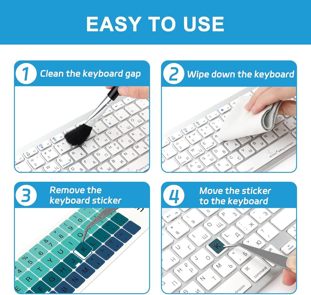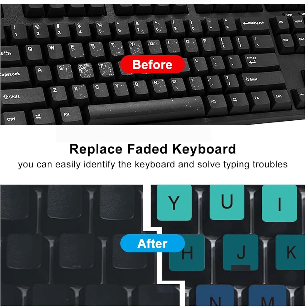 【حماية لوحة المفاتيح】: تعمل الملصقات كطبقة واقية للوحة المفاتيح الخاصة بك ، مما يمنع ارتداء Keycap والحفاظ على سطح لوحة المفاتيح خالية من الأوساخ ، وبالتالي تمديد عمره والحفاظ على مظهر جديد.