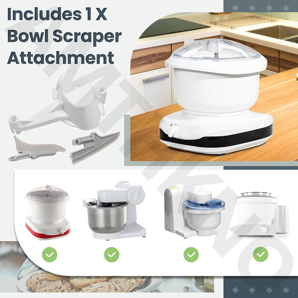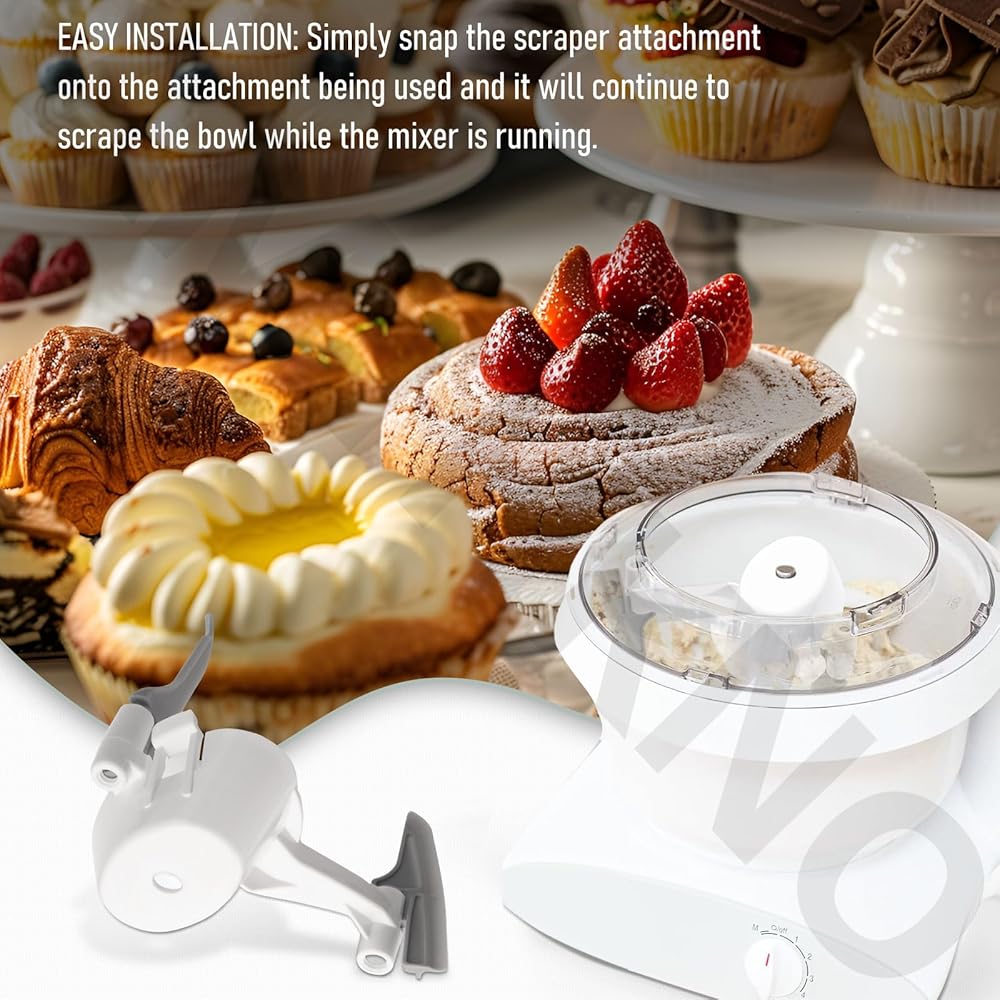 • EASY INSTALLATION: Simply snap the scraper attachment onto the attachment being used and it will continue to scrape the bowl while the mixer is running.