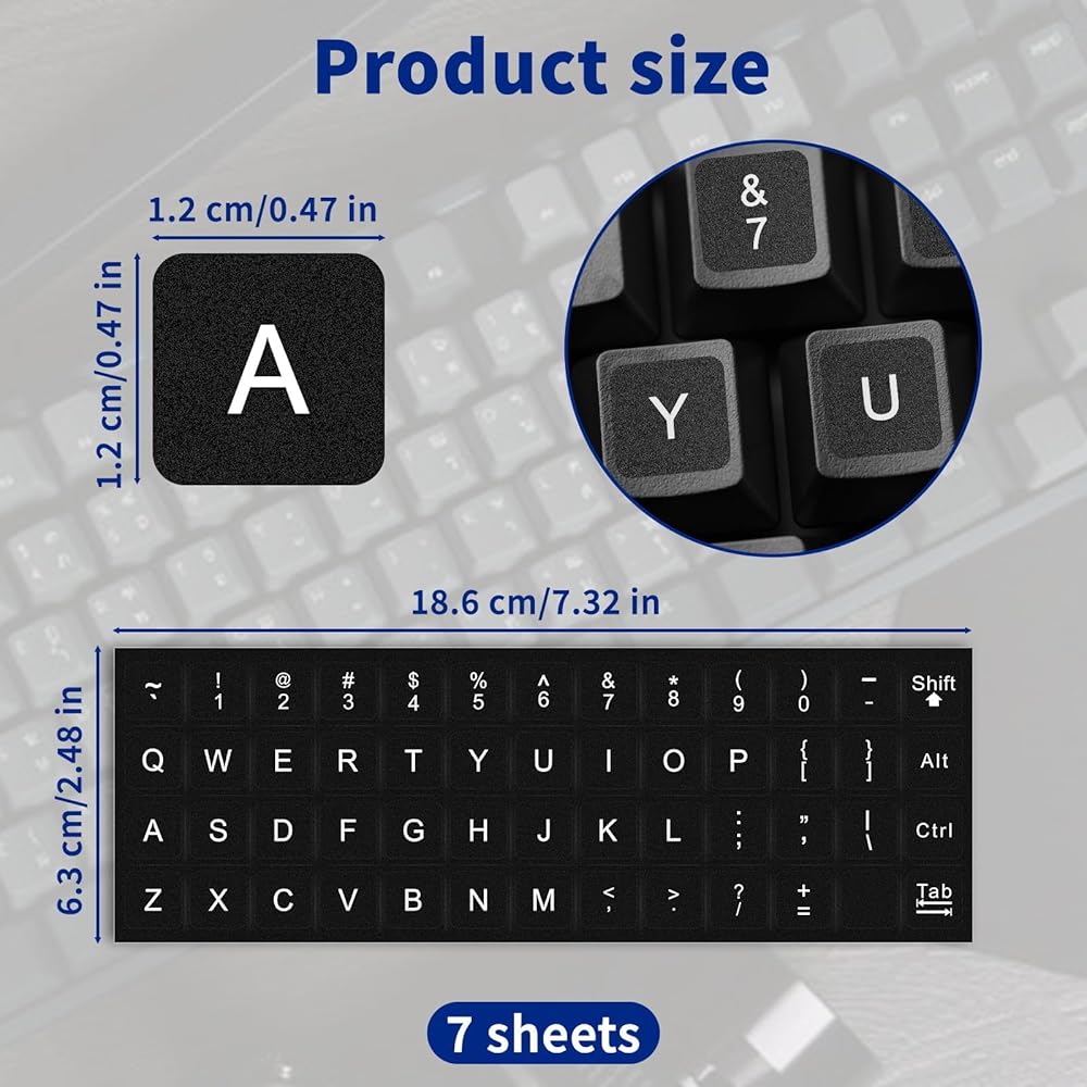 7PCS Universal Keyboard Stickers Computer, Matte Keyboard Letter Stickers Keyboard Letters Replacement Stickers English with White Font on Black Background for Computer Laptop Desktop
