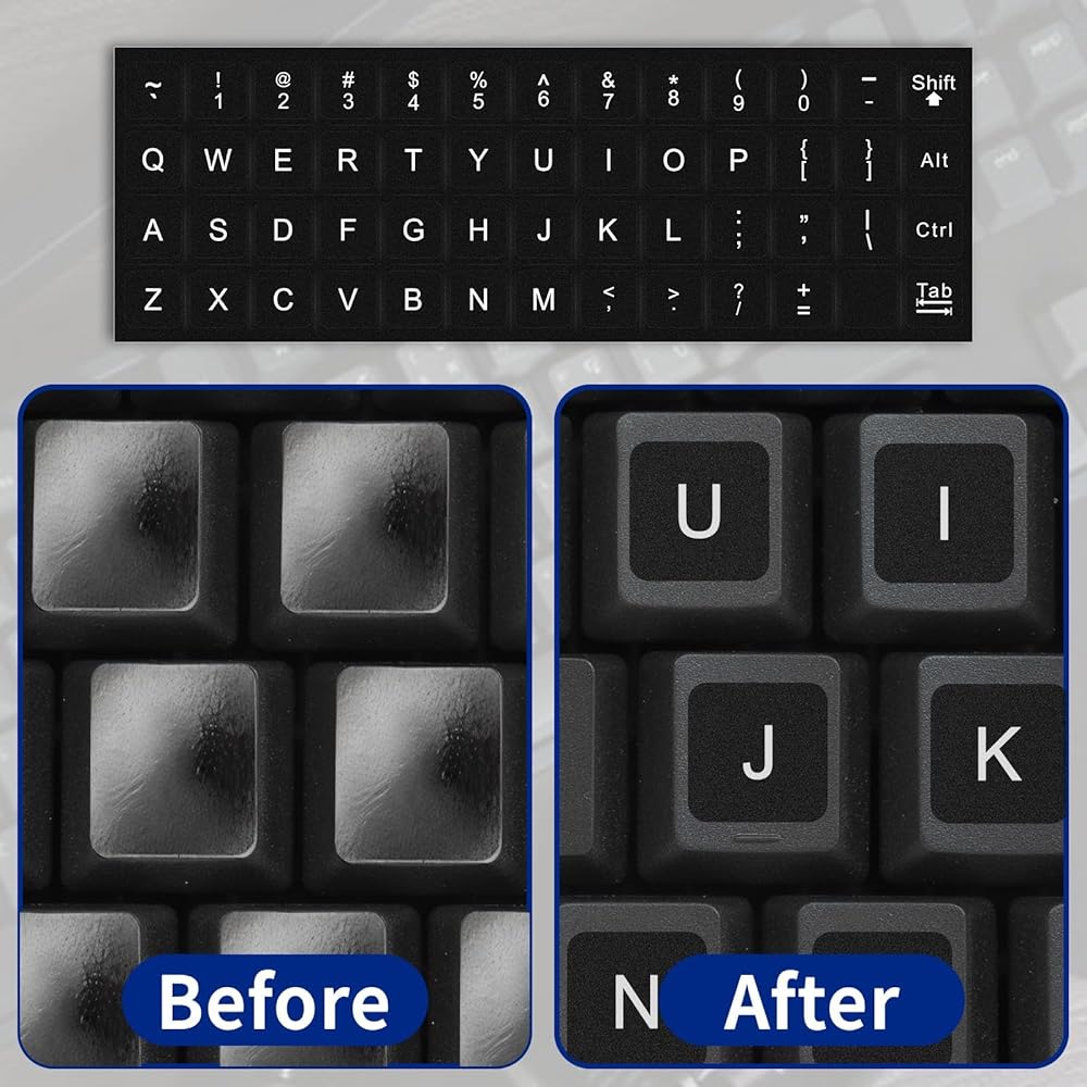 • Renew The Worn-out Keyboard: Matte keyboard letter stickers are a great way to update your keyboard worn-out letter keys with a different fresh new look, so you don't have to spend a lot of money on a new keyboard