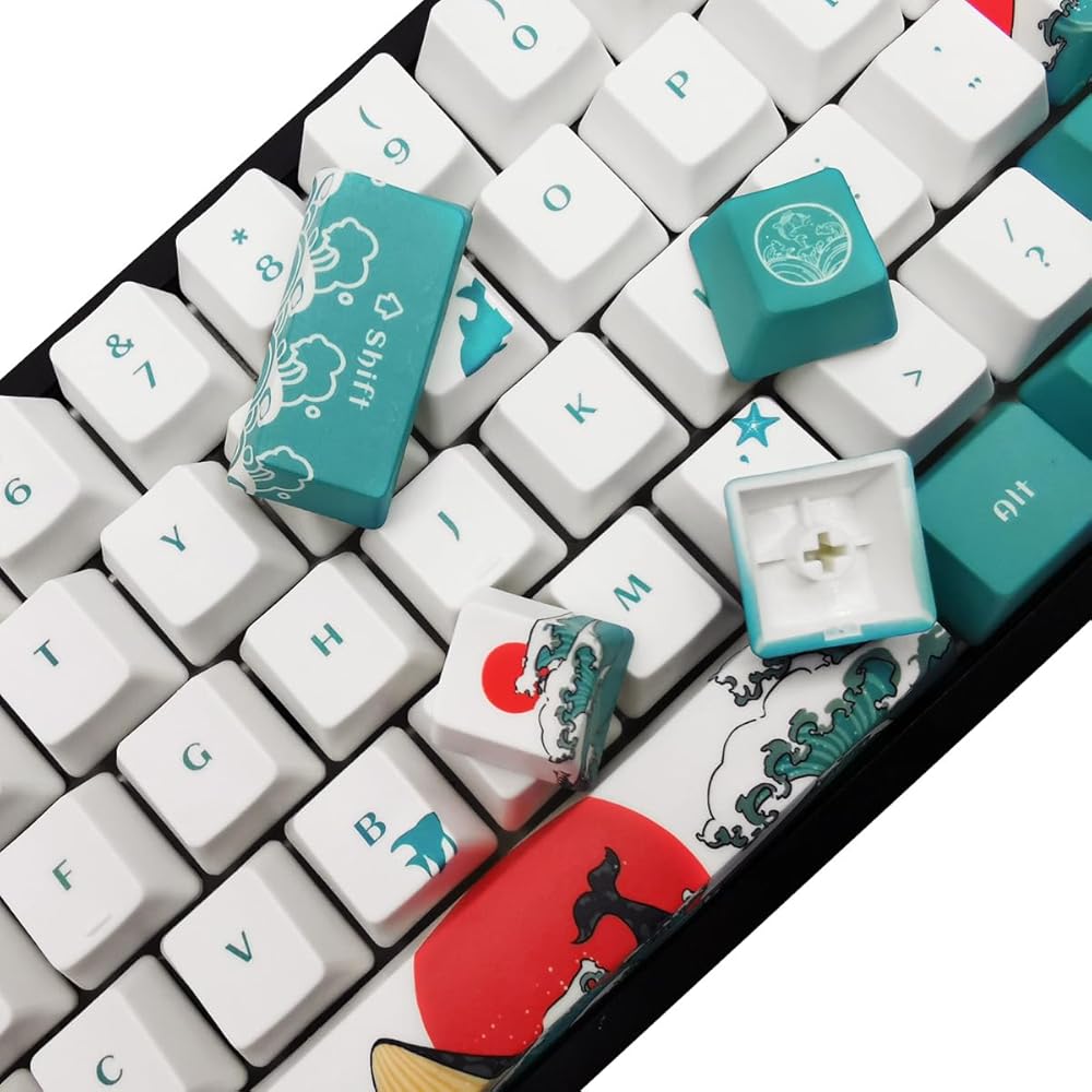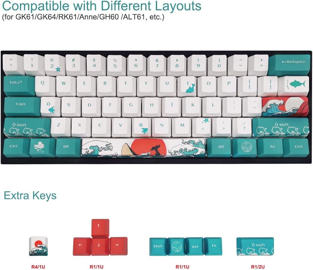 SDYZ Custom keycaps-keycaps 60 في المائة ، مناسبة لـ gk61/gk64/rk61/anne/gh60/alt61 لوحات مفاتيح ميكانيكية ، 71 مجموعة مفاتيح ، ملفات تعريف pbt pbt (Coral Sea Keycaps)
