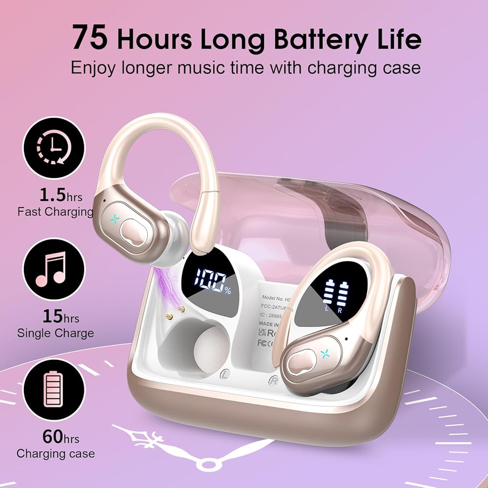 • Hi-Fi Deep Bass Stereo and Crystal Clear Calls: Bluetooth earphones 14.2mm large size speaker driver delivers powerful bass, mellow midrange, and clear treble, reproducing your music vividly to power your workout. Noise cancelling headphones are equipped with high quality ENC noise reduction mics to passively cancel 80% background noise so you and the caller can hear each other better and make crystal-clear calls with minimal background noise. Enjoy top-notch conversations wherever you are.