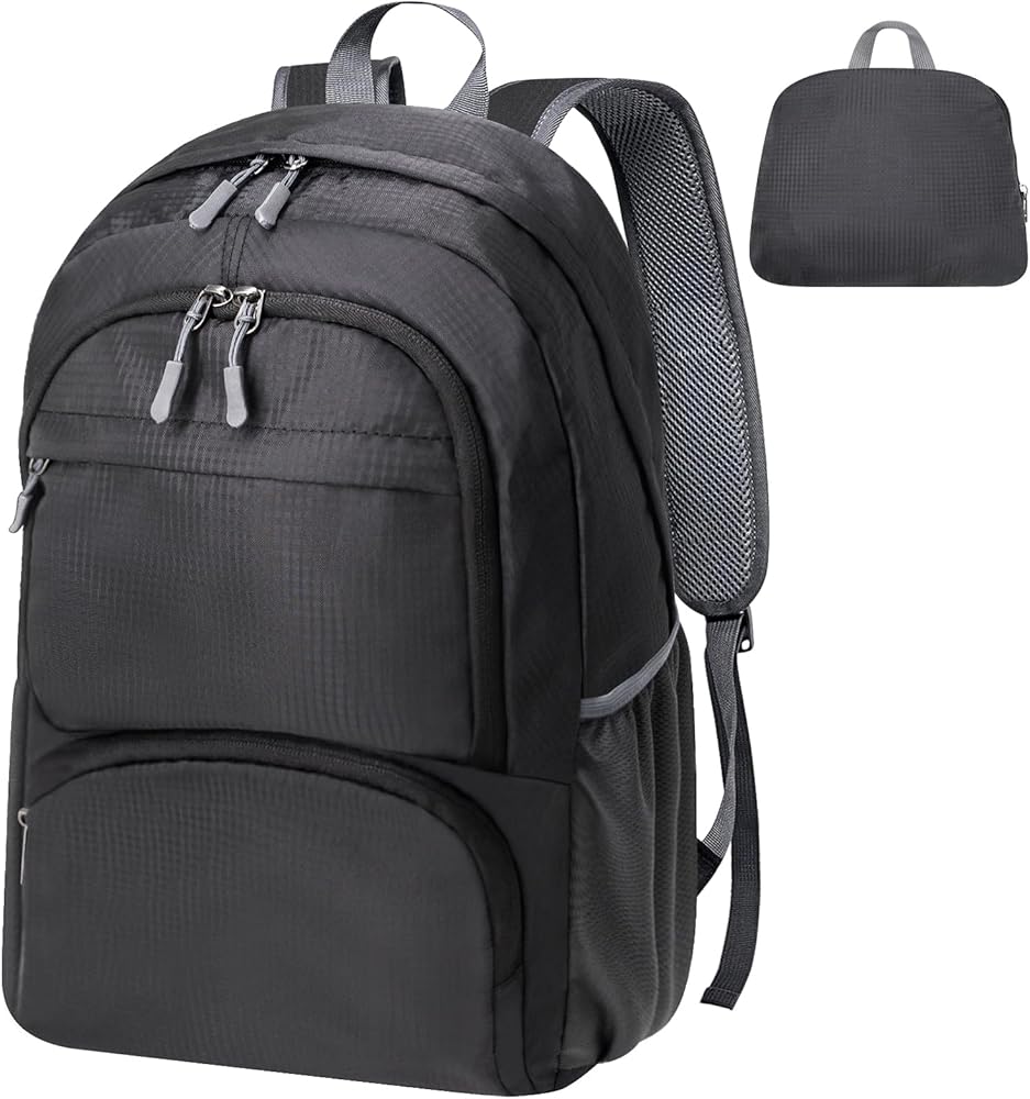 السعة الكبيرة: الحجم: 18*11.5*6inch (l*w*h) ، مساحة تخزين 20L. تتميز حقيبة الظهر القابلة للطي بثلاثة مقصورات سحابية. الجيب الرئيسي كبير بما يكفي لعقد iPad والملابس. جيوب أصغر خارجية رائعة للوصول السريع مثل الأنسجة والمفاتيح. جيوب جانبية شبكية لزجاجات المياه أو المظلة.
