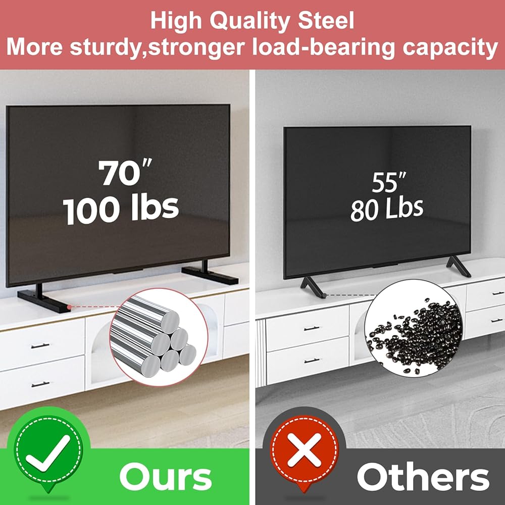 • ---High-Quality Steel---The table top TV stand base for Sony is made of premium steel, ensuring greater stability and reducing the risk of your TV tipping over. The sturdy steel construction is durable, resistant to deformation and rust, with longer usage time