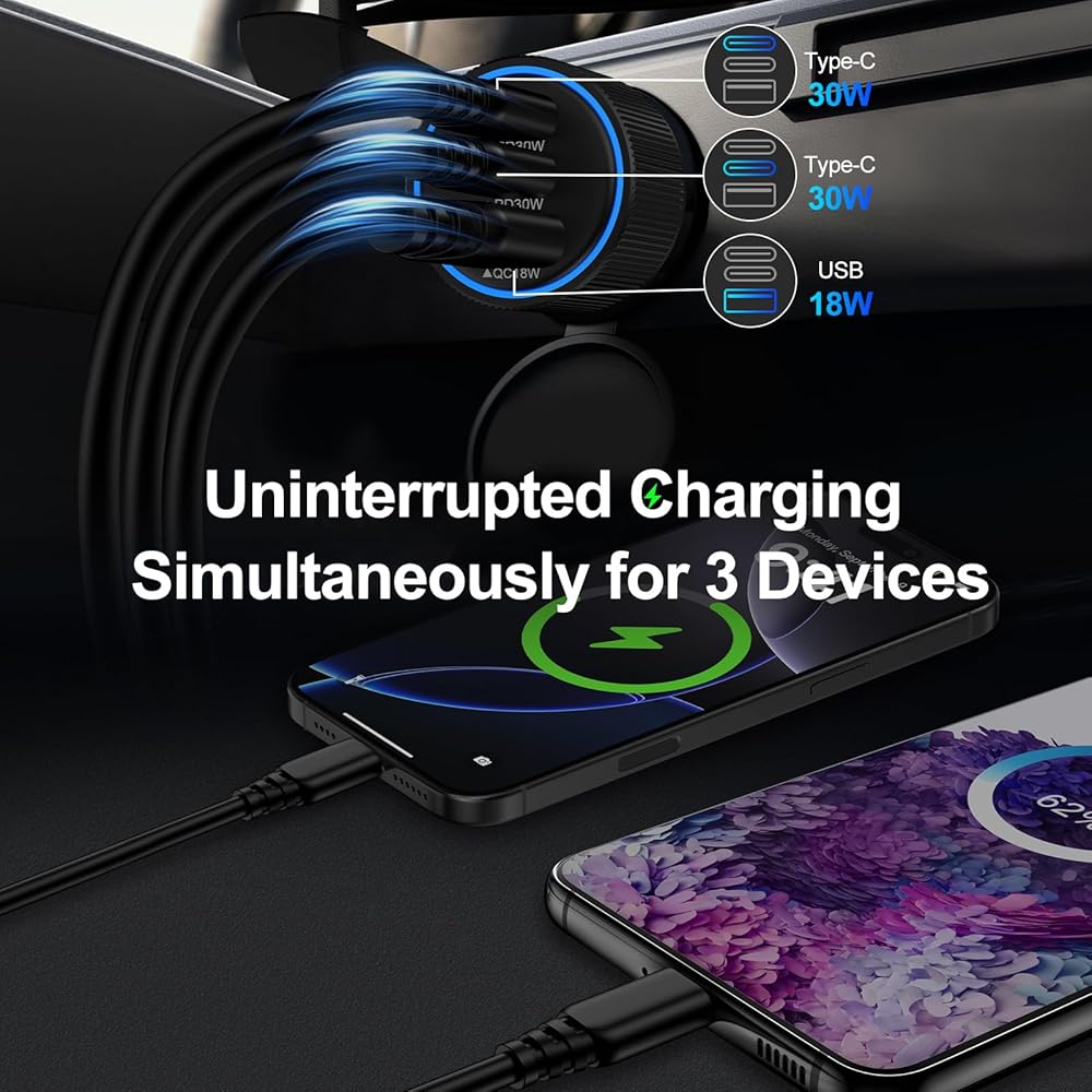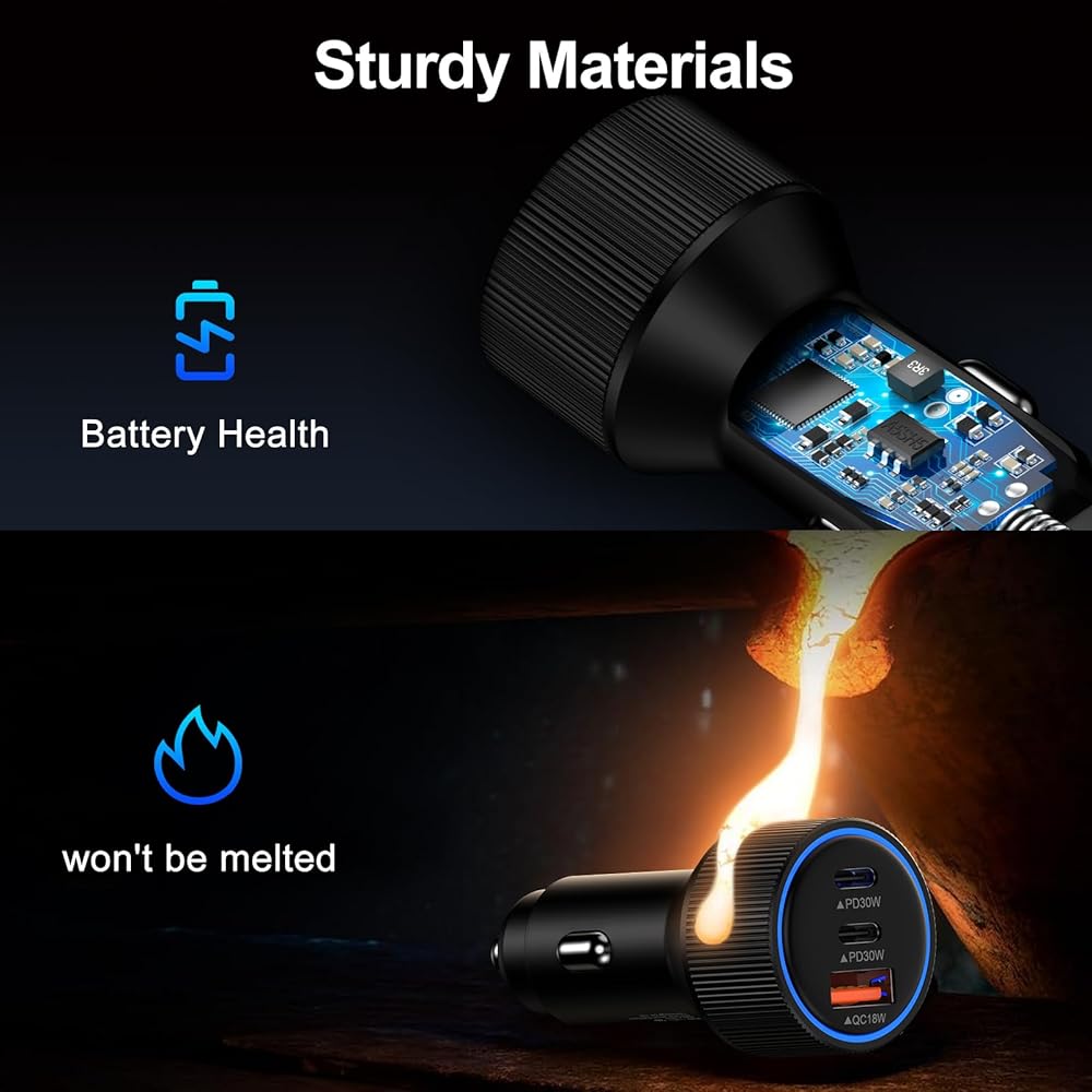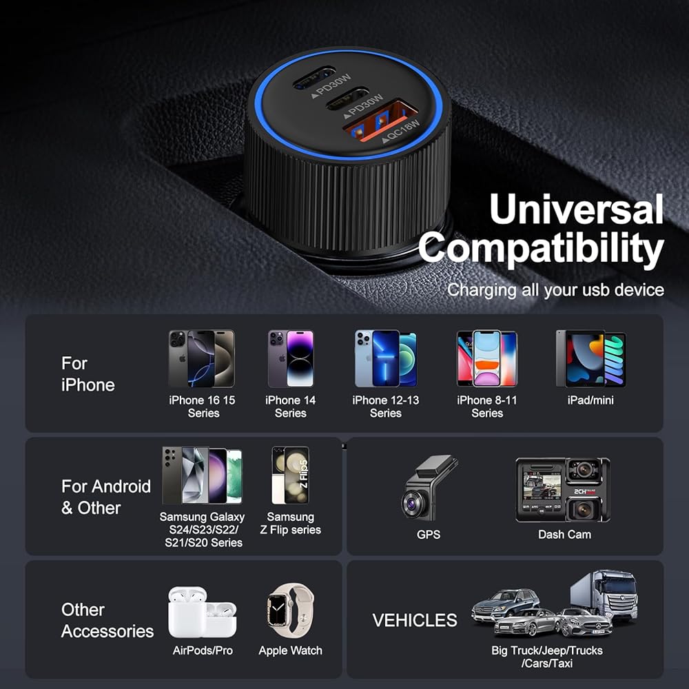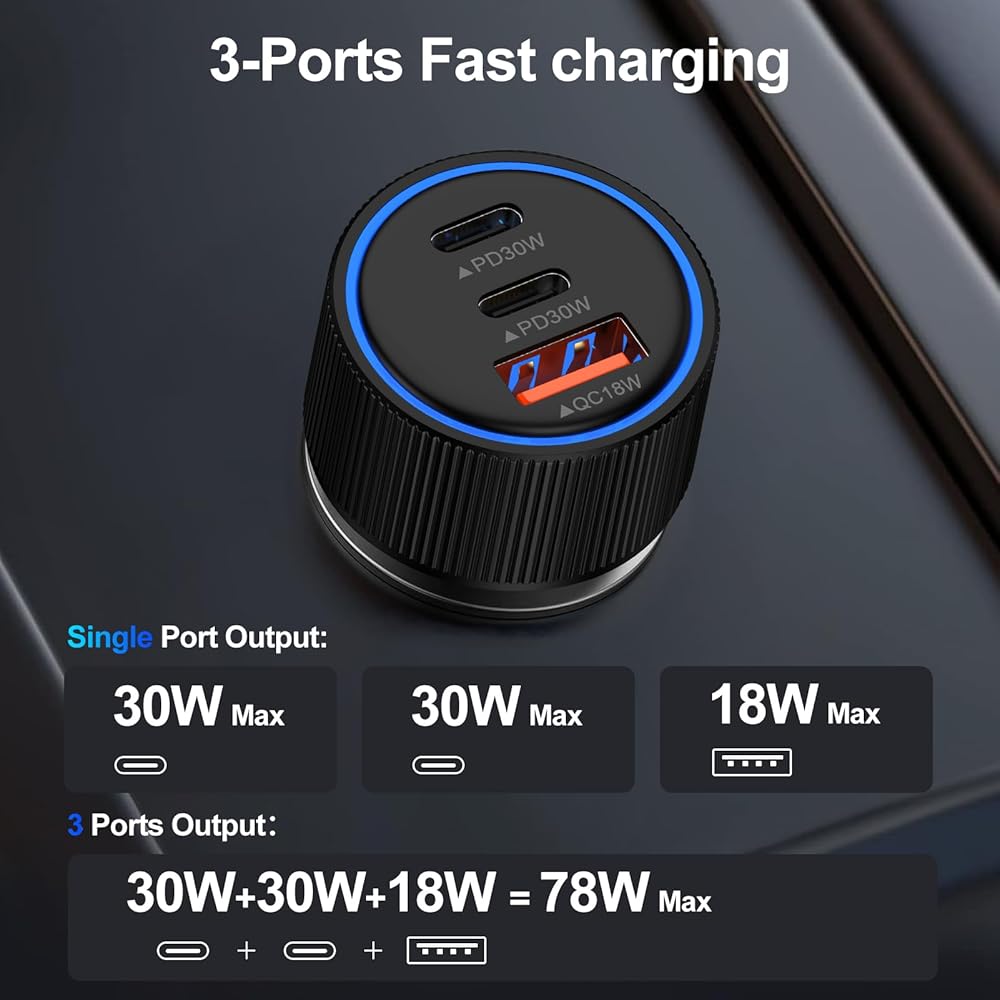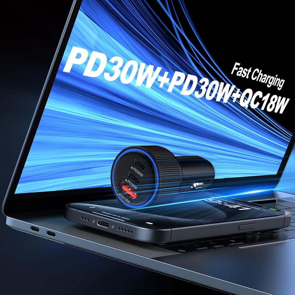 1.The PD port provides up to 30W of charging power, while the USB-A port supplies up to 18 W. You can achieve rapid charging with this cigarette lighter charger, but your phone must support it