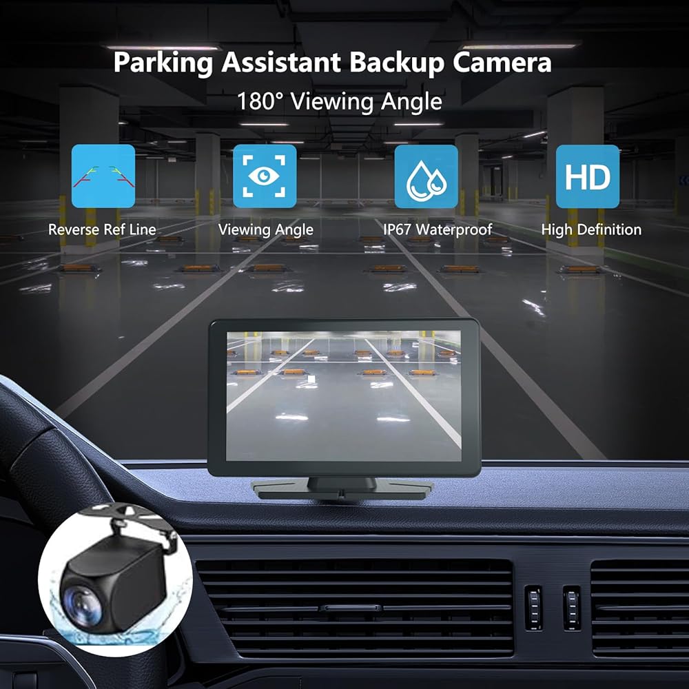 REAL-TIME GPS NAVIGATION & BACKUP CAMERA SUPPORT: Navigate with the 10.26-inch CarPlay screen for car, featuring real-time GPS guidance. The package includes a 180° adjustable waterproof backup camera with an 18-foot cable for safer reversing and parking assistance, ensuring clear visuals even in low-light conditions.