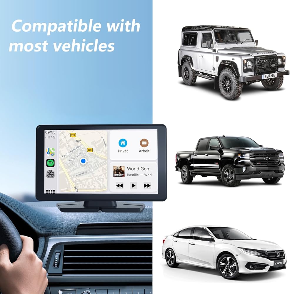 WIRELESS CARPLAY & ANDROID AUTO FOR SMARTER DRIVING: Upgrade your car with a wireless CarPlay screen, offering seamless Apple CarPlay and Android Auto connectivity via Bluetooth and Wi-Fi. Access navigation, music, messages, and hands-free calls effortlessly. Voice control through Siri or Google Assistant ensures a safer and more convenient driving experience.