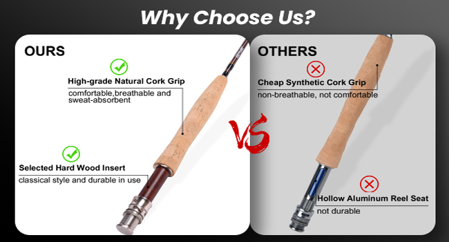 Super Light و Sturdy: 30+36T Carbon Carbon Construction يجعل القضيب زيادة بنسبة 20 ٪ على الأقل في القوة وأخف وزنا على الأقل بنسبة 20 ٪. قبضة AA Cork عالية الجودة لمزيد من الراحة والمساعد في الصب.