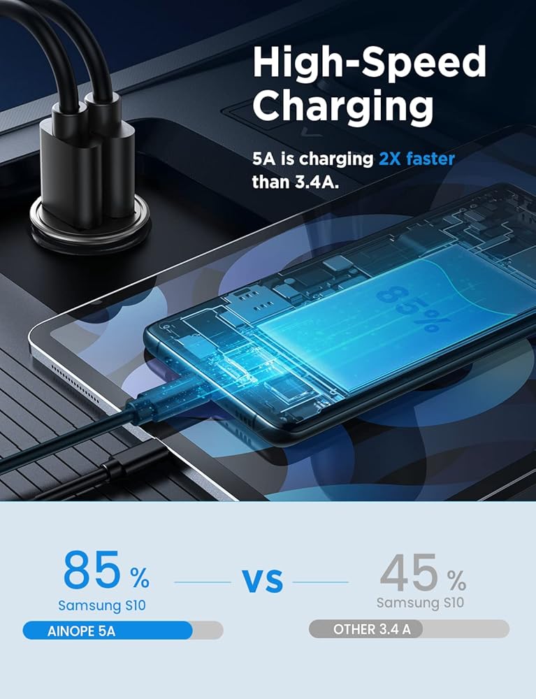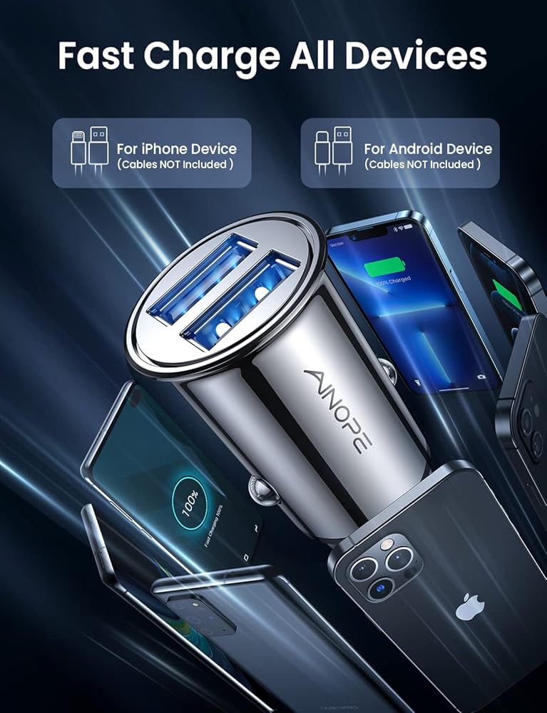 ⚡ ضاعف الشحن ، لا يوجد انتظار: يتيح لك شاحن سيارة USB المزدوج شحن جهازين في وقت واحد بأقصى سرعة ، مع إجمالي الناتج يصل إلى 4.8a ، مما يعني أنه يمكنك تقديم وداع للانتظار الطويل والحفاظ على رحلتك مدعومة. يرجى ملاحظة: Ainope Car USB Adapter لا يدعم Qualcomm Quick Charge. لن تظهر صفحة الشحن رسومًا سريعة عند الشحن.