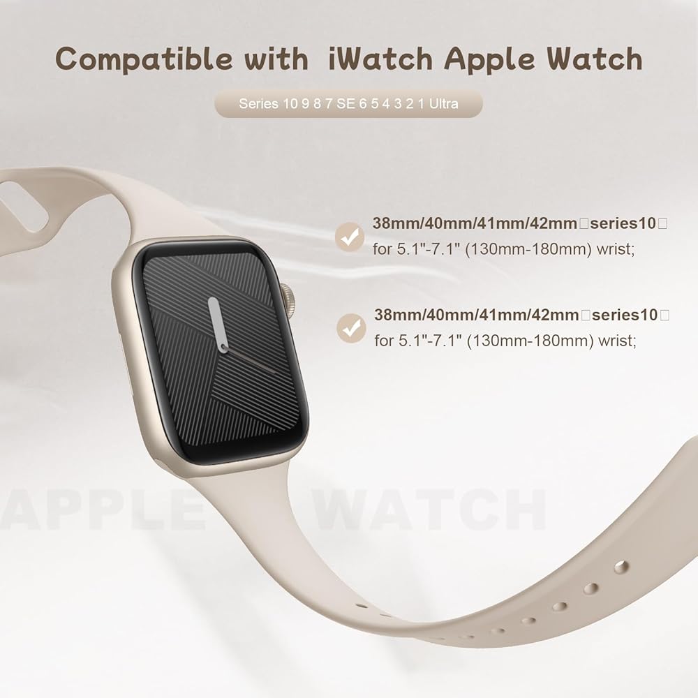 • 【لون أنيق وحجم قابل للتعديل】 تتوفر نطاقات السيليكون الرياضية في Apple Watch باللون الأسود والأبيض والضوء النجوم والرمل الوردي وألوان جديدة لعام 2024: الخوخ الخفيف الوردي والدينم والأخضر البحيرة. 38 مم/40 مم/41 مم/42 مم (سلسلة 10) أحجام تناسب 5.1 "-7.1" (130 مم-180 مم) الرسغين ؛ 44mm/45mm/46mm/49mm/42mm (Series 3 2 1) أحجام تناسب 5.9 " - 7.9" (150mm -200mm) معصم.