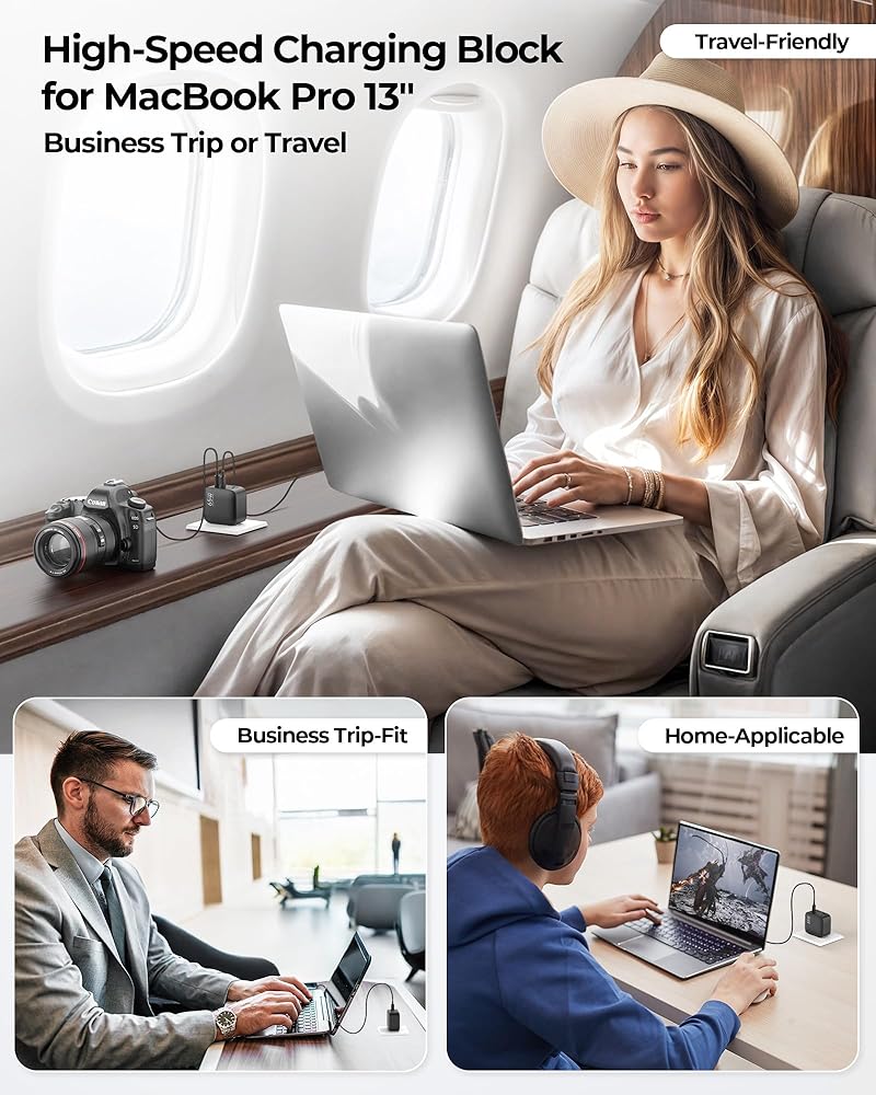 65W MAX OUTPUT: يقوم كل من منافذ USB-C1 و C2 بتسليم كل منها 65 واط من الطاقة عند استخدامها بشكل فردي. إنه يكفي لتوفير الطاقة الكاملة ل MacBook Air M1 أو MacBook Pro 13 ″ أو أكثر