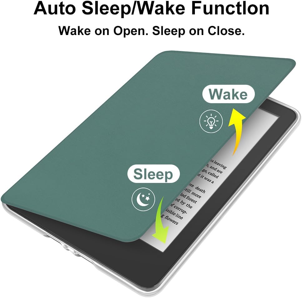 حالة لـ 6 "Kindle (الجيل الحادي عشر -2024 إصدار) ، الغطاء الخلفي الشفافة الشفافة الشفافة الناعمة واضحة مع نوم/استيقاظ تلقائي لـ Kindle (Model No. RS23CV) ، Green Dark