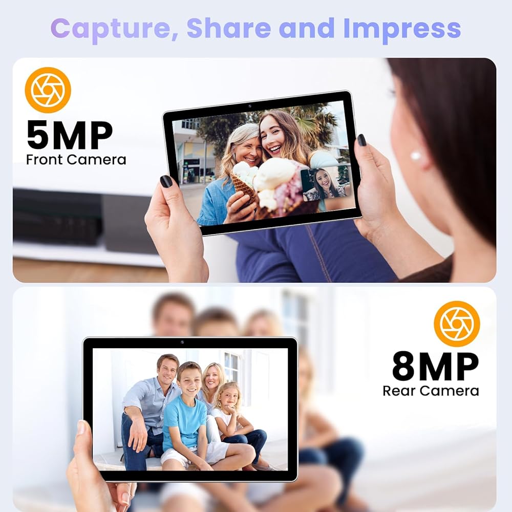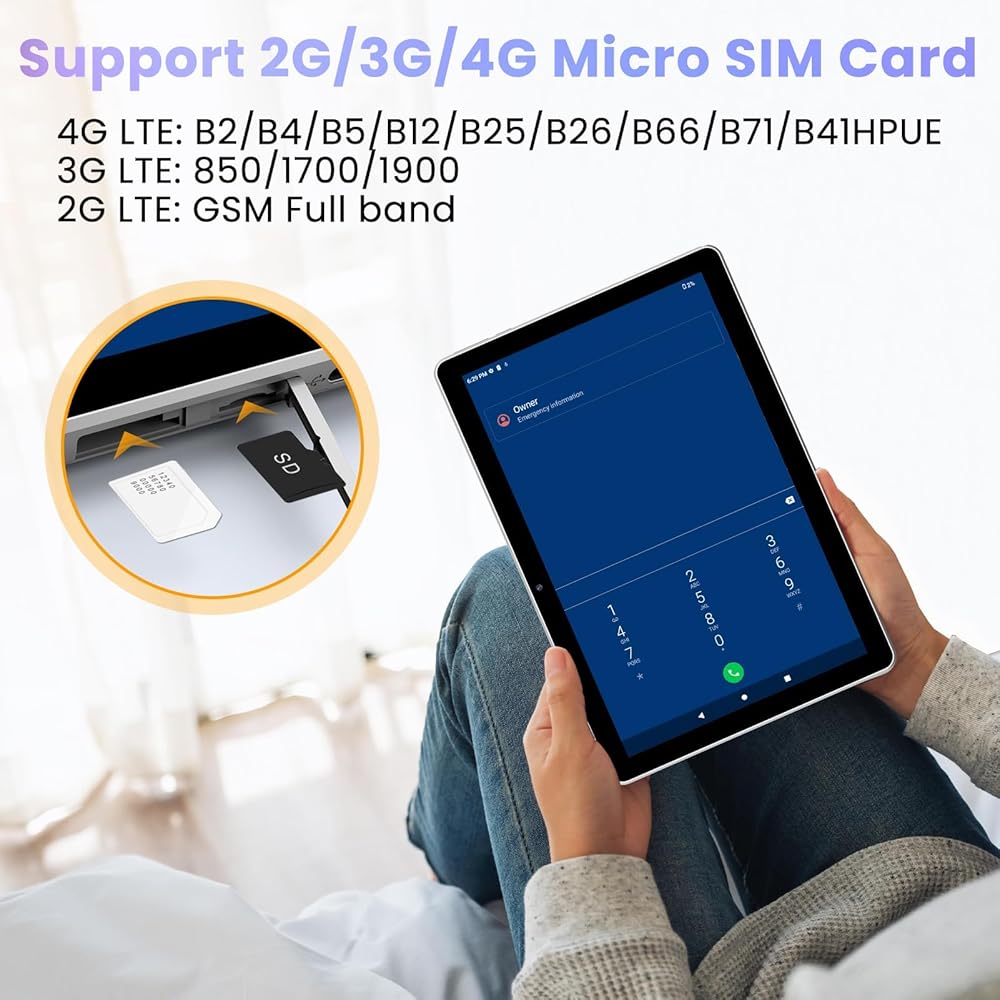 • 4G Cellular & Wi-Fi Tablet: يحتوي هذا الجهاز اللوحي الذي تم فتحه 4G LTE على فتحة بطاقة SIM ، مما يجعلك متصلاً بشبكات الهاتف المحمول حتى بدون WiFi (يدعم 2G و 3G و 4G). في الداخل ، يتصل بسهولة بـ 2.4G/5G Dual-Band WiFi ، مما يوفر المزيد من خيارات الشبكة. يوفر الجهاز اللوحي الخلوي والواسك اتصالًا أكثر ملاءمة من جهاز لوحي WiFi-only.