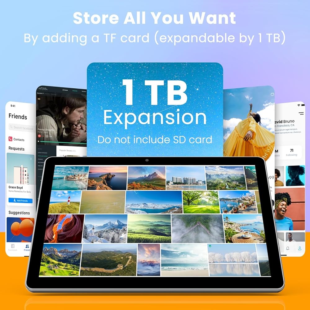 • التخزين القابل للتوسيع: يأتي هذا الجهاز اللوحي Android 13 يحتوي على سعة تخزين 64 جيجابايت ، قابلة للتوسيع حتى 1 تيرابايت عبر بطاقة TF ، مما يتيح لك تخزين جميع ملفاتك والتطبيقات المفضلة. يدعم Tablet Nintaus أيضًا Bluetooth 5.0 و GPS. The tablet with GPS keeps you connected at all times, making it the perfect companion for your journey.