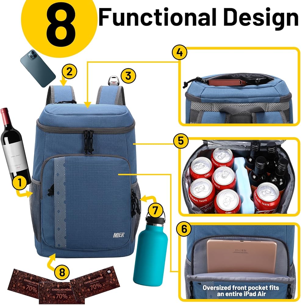 Cool Lunchbox Bookbag ---- Mier Backpack Cooler تتميز بجدران عازلة سميكة تبلغ 8 ملم ، فإن حقيبة الظهر الباردة هذه ستبقي طعامك باردًا/دافئًا/طازجًا لمدة 18-20 ساعة. مرحبًا بكم Ice Pack أو Ice Cube