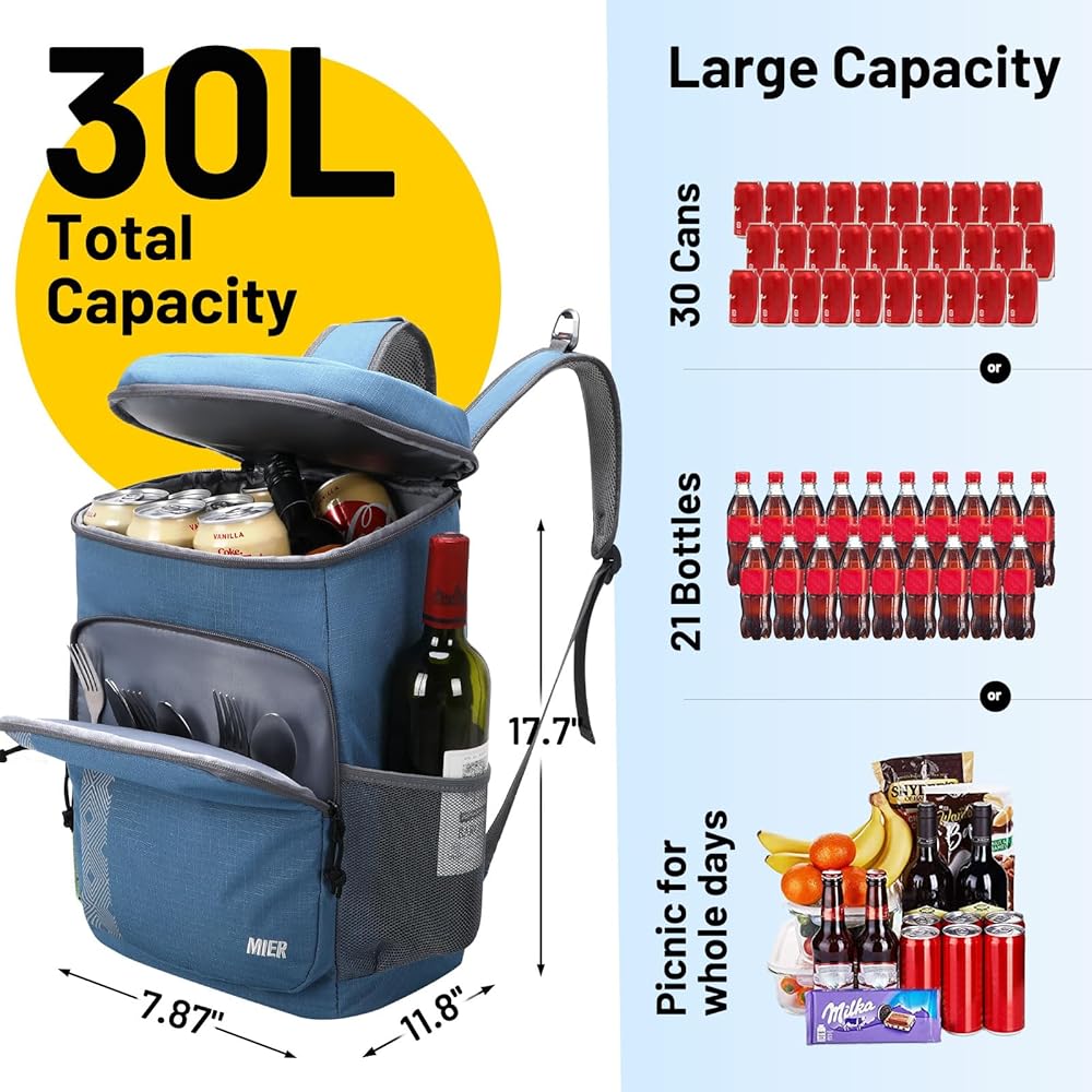 حقيبة ظهر كبيرة معزولة ---- بُعد حقيبة: 11.8 "× 7.87" × 17.7 " / 30 سم × 20 سم × 45 سم (l x w x h) ، امسك ما يصل إلى 30 علب ، السعة: 30 لتر البيرة والوجبات الخفيفة والمشروبات الطويلة وجميع ضرورياتك الأخرى.